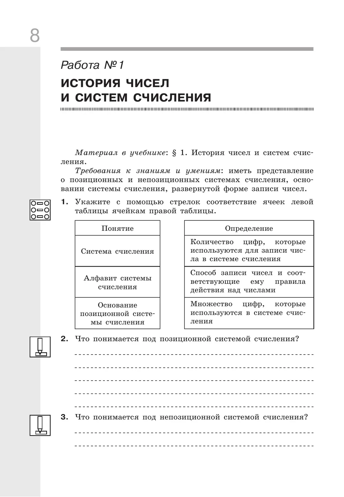 Информатика. 8 класс. Рабочая тетрадь. Часть 1. ФГОС. Базовый уровень. (Просвещение)