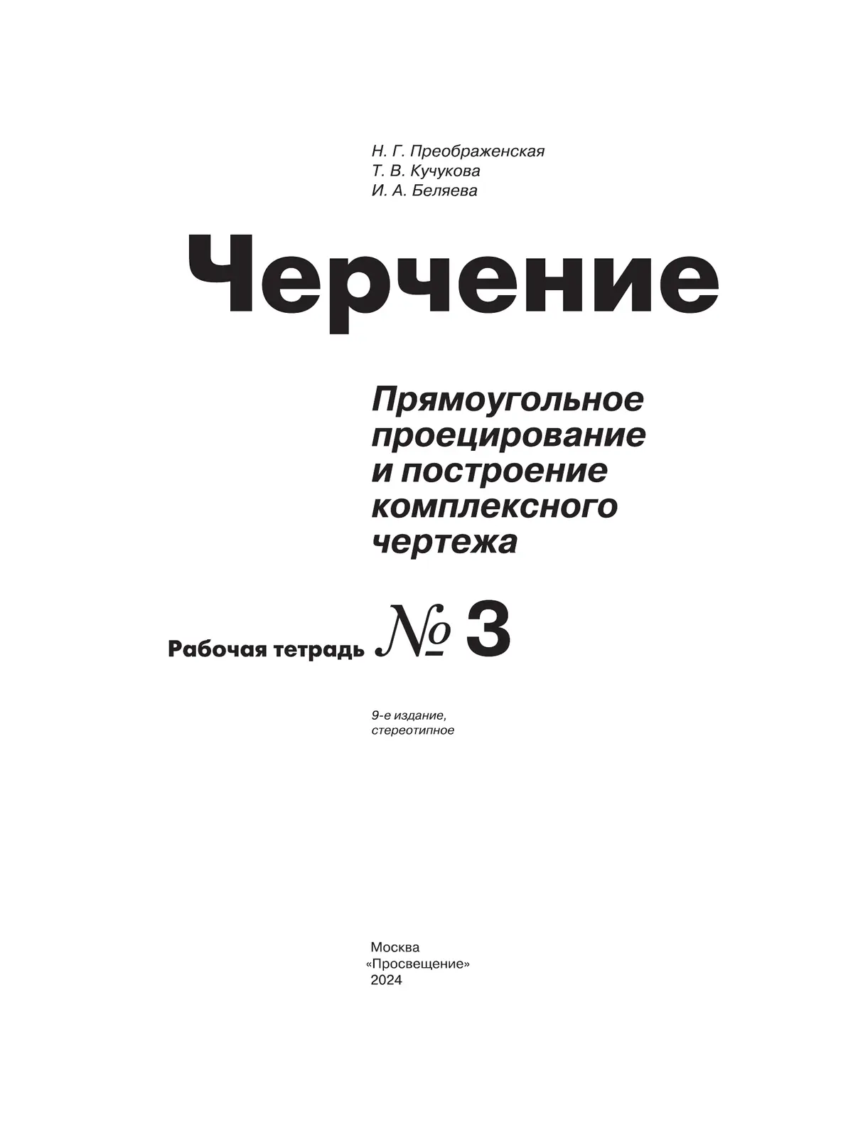 В рабочей тетради №3 решаются вопросы, связанные с обучением чтению и построению комплексных чертежей, представленных двумя или тремя видами. Представленная в тетради система знаний способствует последовательному развитию у школьников пространственных представлений и мышления, формированию познавательного интереса, расширению и углублению знаний, умений и навыков, полученных учащимися во время работы по тетрадям № 1 и 2.