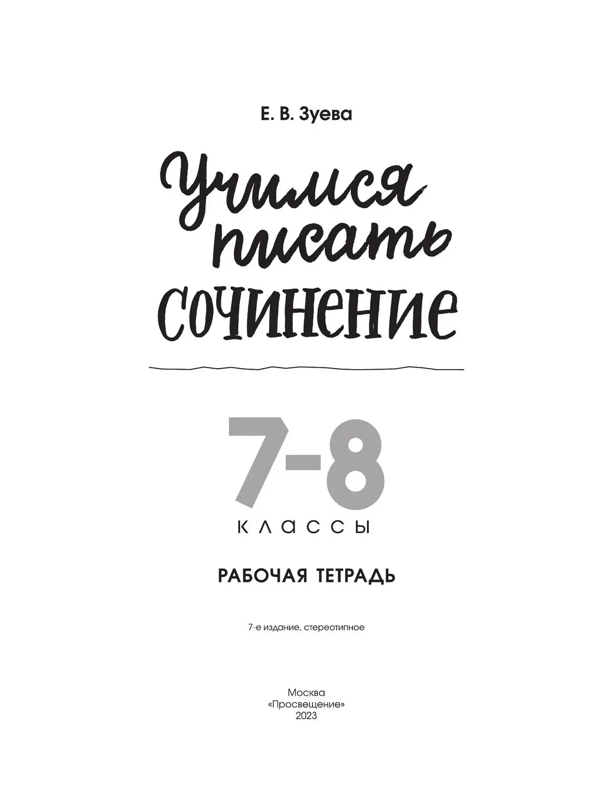 Пособие адресовано учащимся 7-8 классов и включает задания, помогающие научиться писать сочинения: формулировать тезис и аргументы, анализировать лирическое стихотворение, психологический портрет, речевую, индивидуальную и сравнительную характеристику литературных героев, особенности пейзажа и интерьера, выявлять позицию и психологизм автора, антитезу.