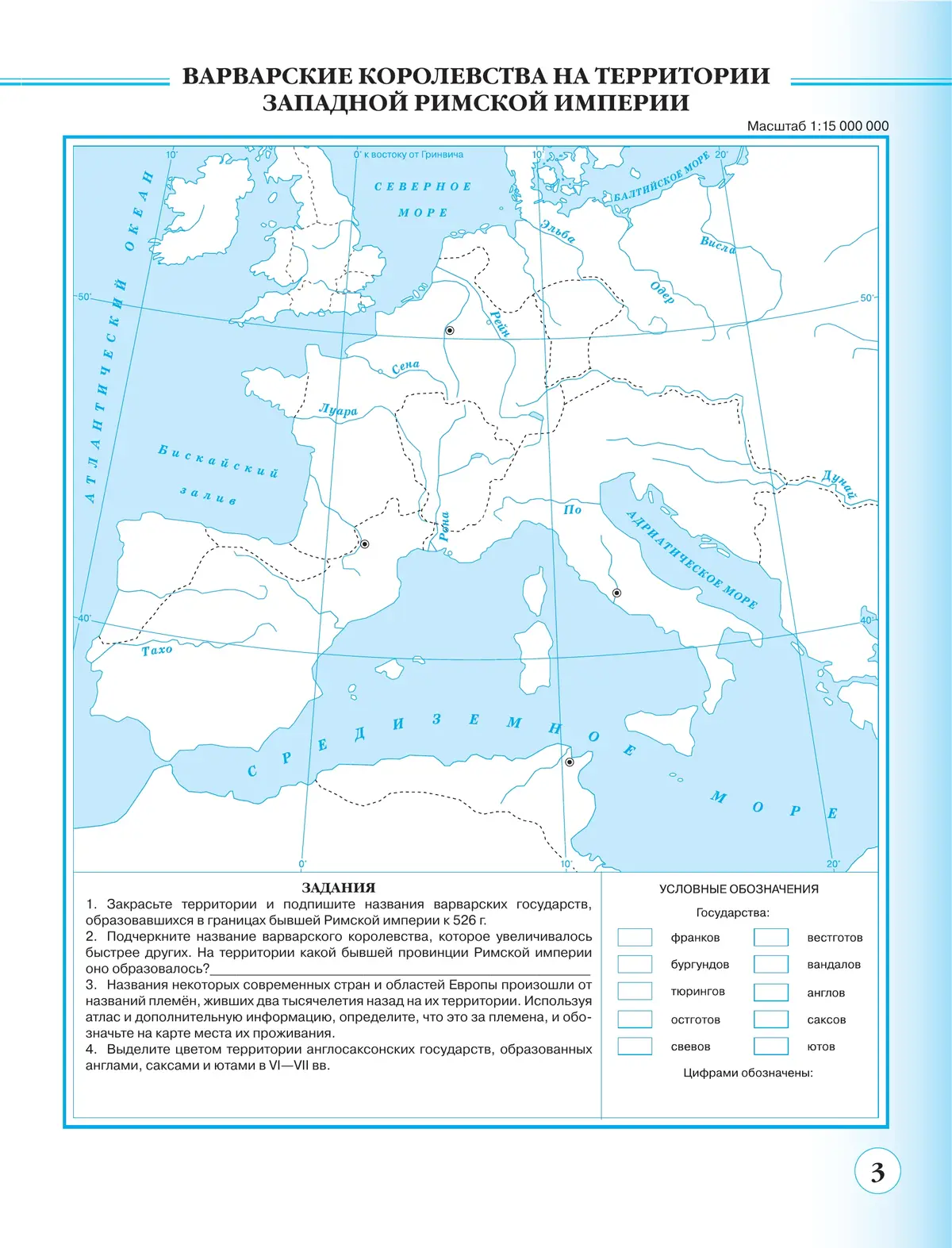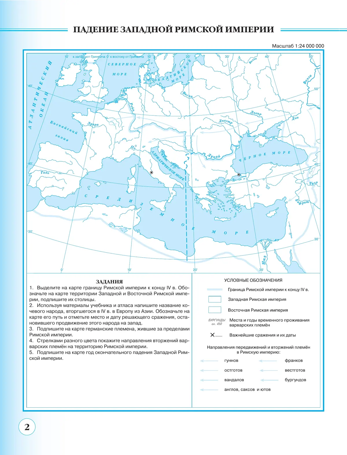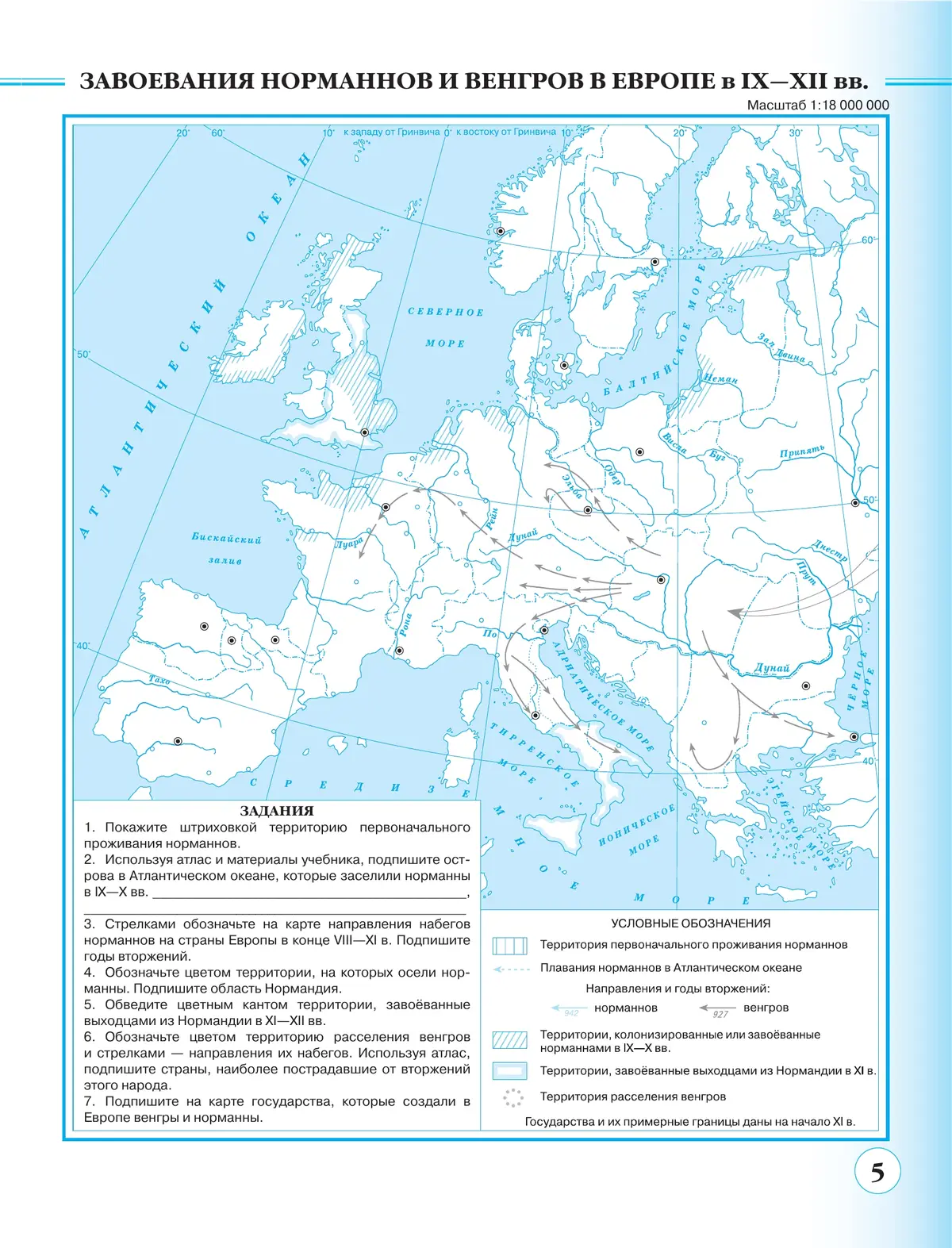 Контурные карты по всеобщей истории для 6 класса включает материалы по истории Средних веков. Линейная структура курса.