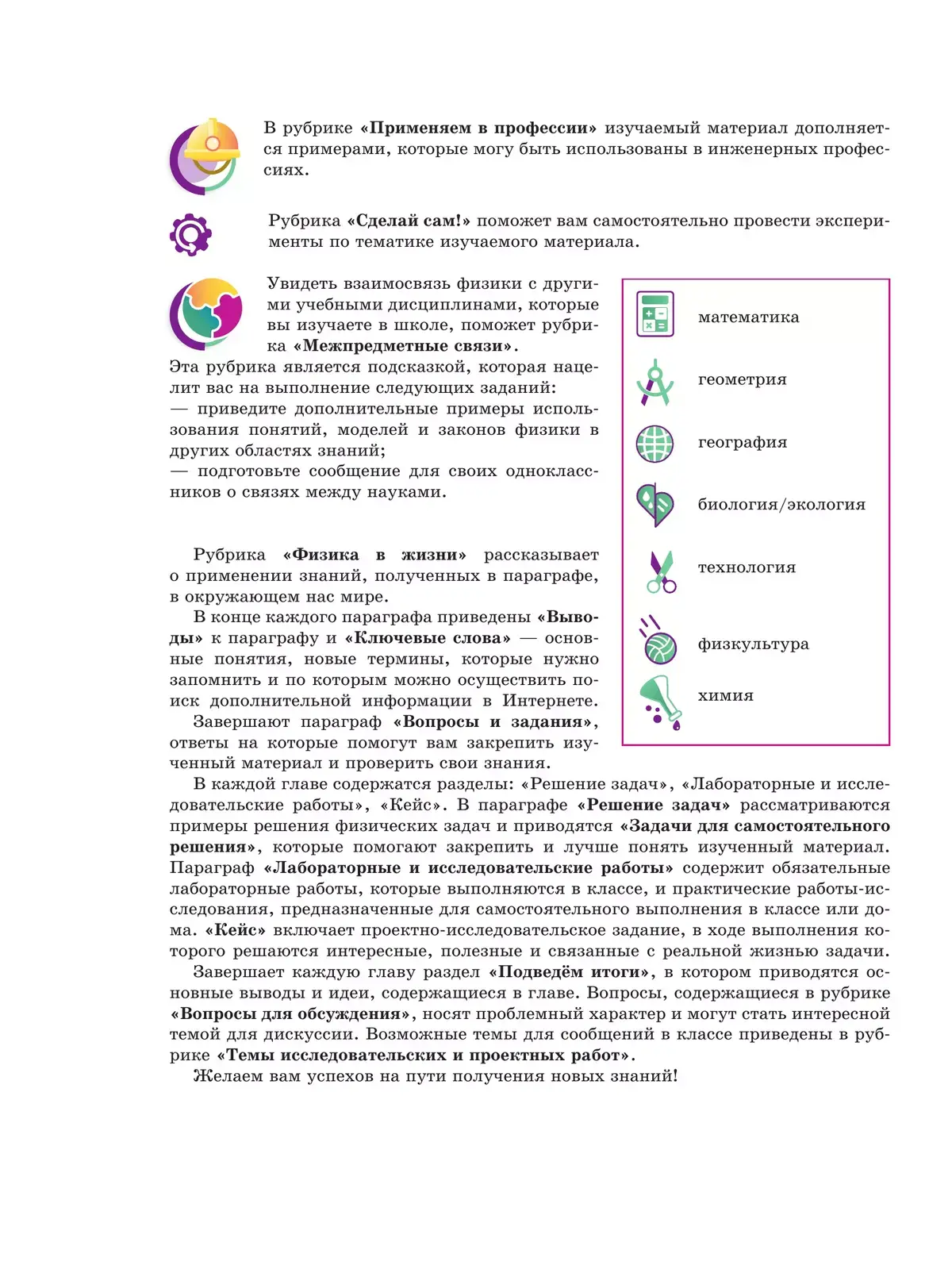 Помимо предметного содержания, в книге заложено развитие представлений о сферах профессиональной деятельности, связанных с современным естествознанием.