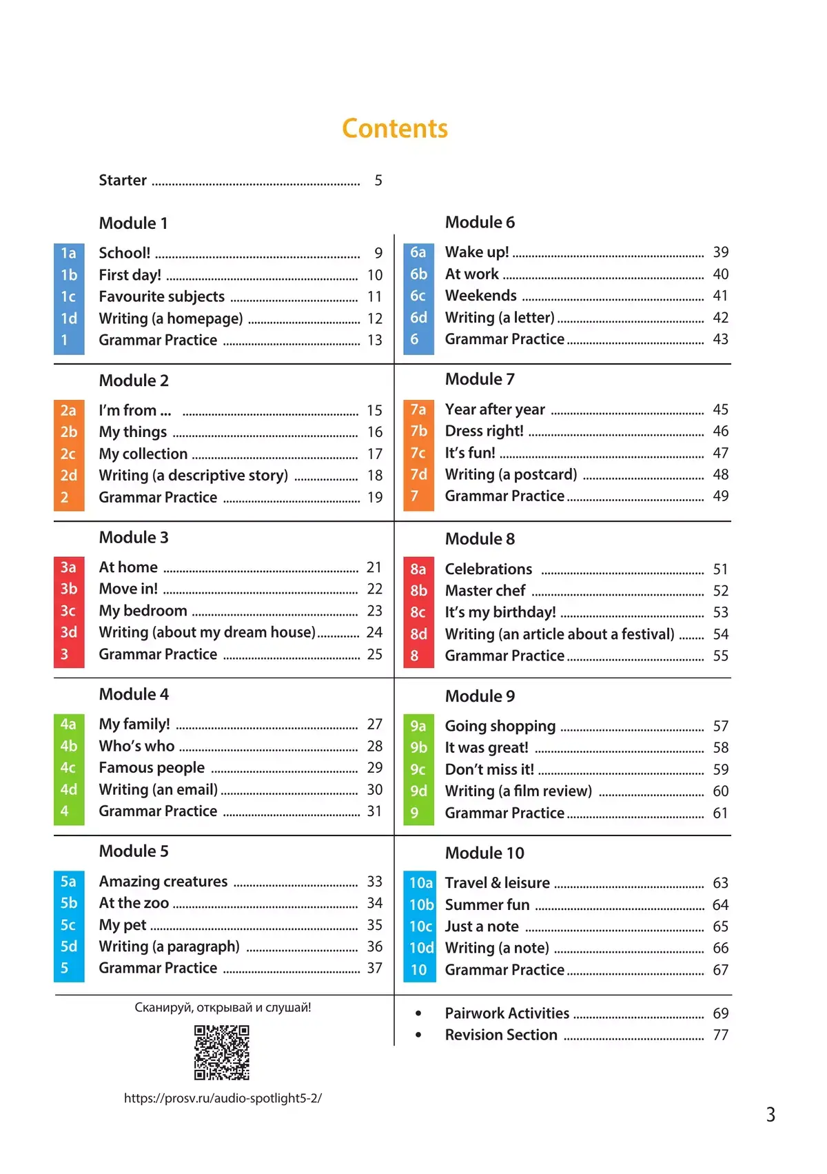 Рабочая тетрадь является обязательным компонентом учебно-методического комплекта по английскому языку серии «Английский в фокусе» для учащихся 5 класса общеобразовательных организаций. Тетрадь состоит из 10 тематических модулей. Внутри каждого модуля материал распределяется по темам, соответствующим темам учебника. Рабочая тетрадь содержит упражнения, направленные на активизацию и систематизацию материалов учебника. В конце рабочей тетради есть два дополнительных модуля. Один из них содержит упражнения для работы в парах, другой направлен на повторение и закрепление пройденного материала. Рабочая тетрадь была переработана в соответствии с требованиями Федерального государственного образовательного стандарта основного общего образования.