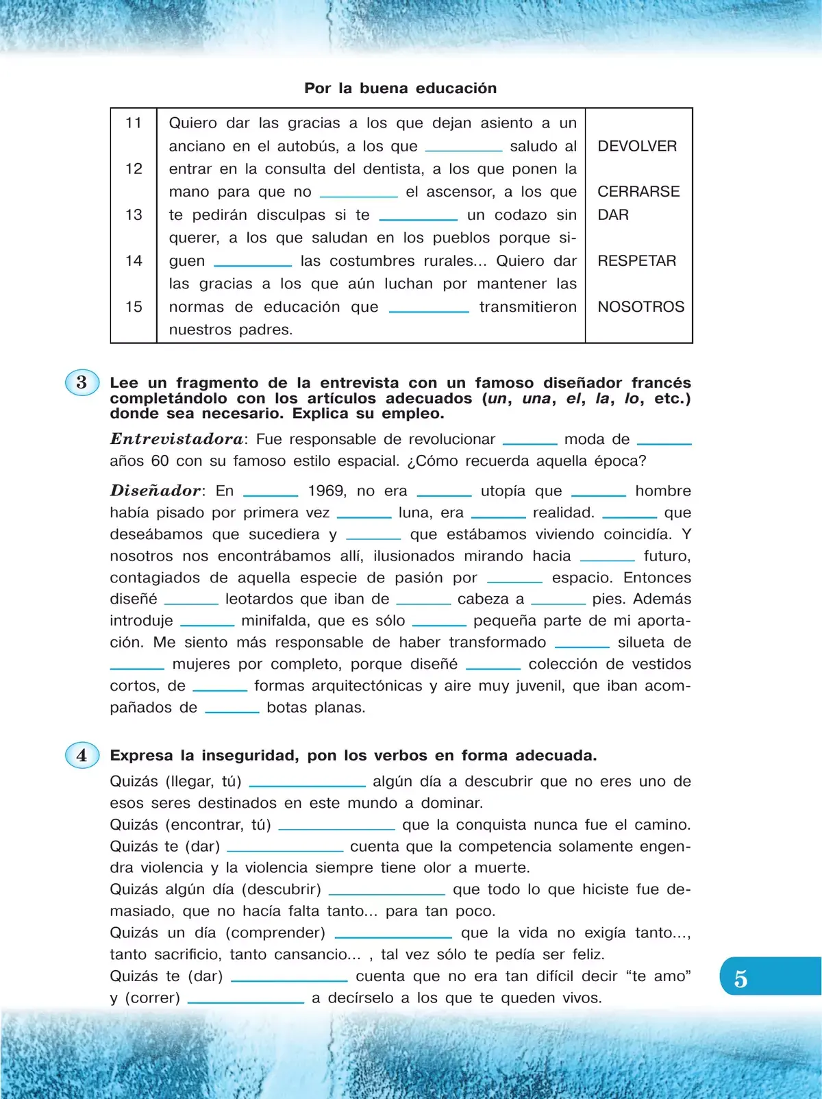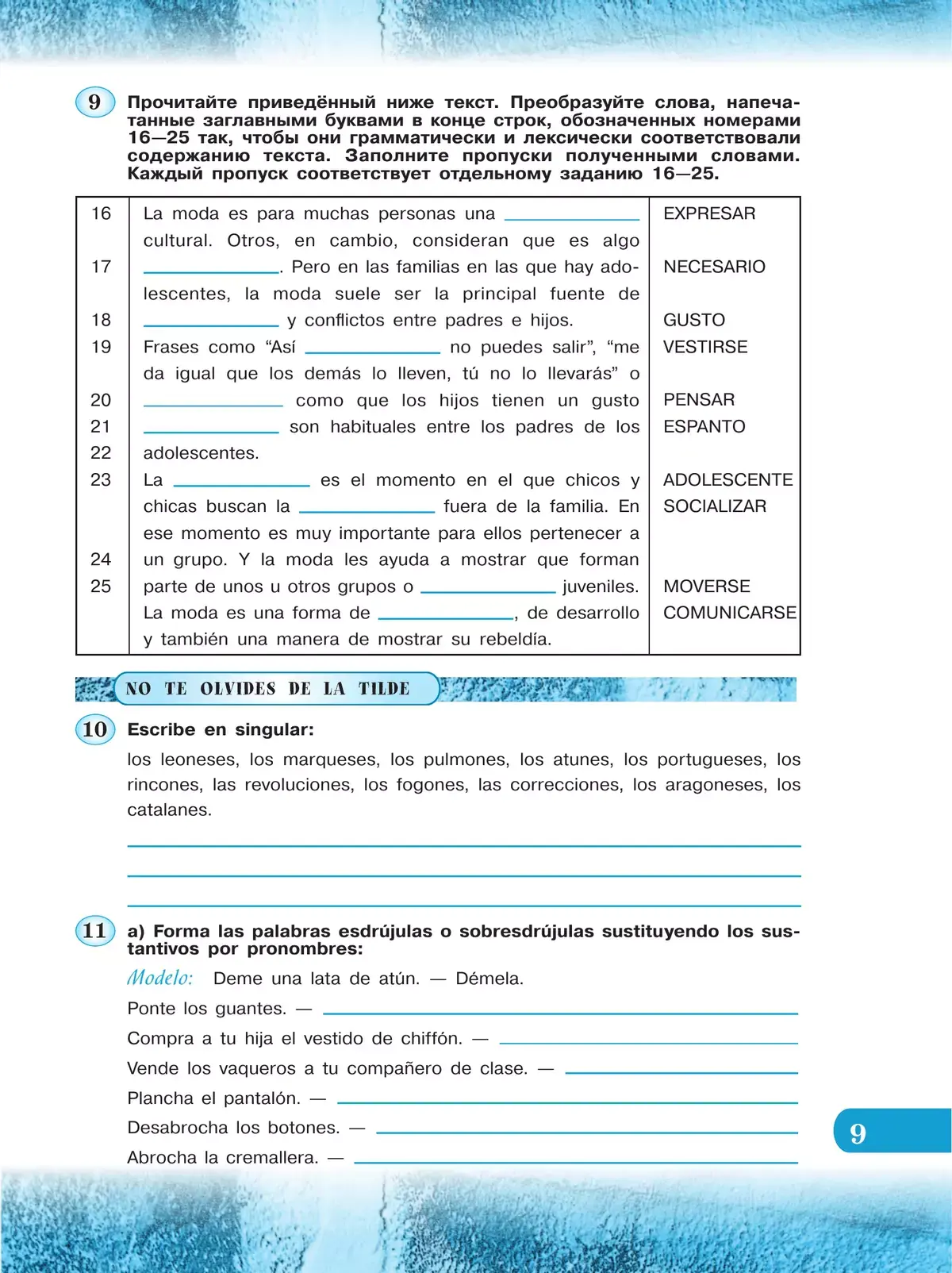 Данное пособие предназначено для учащихся 9 класса общеобразовательных организаций и школ с углублённым изучением испанского языка и служит для отработки лексического и грамматического материала по тематике блоков учебника.