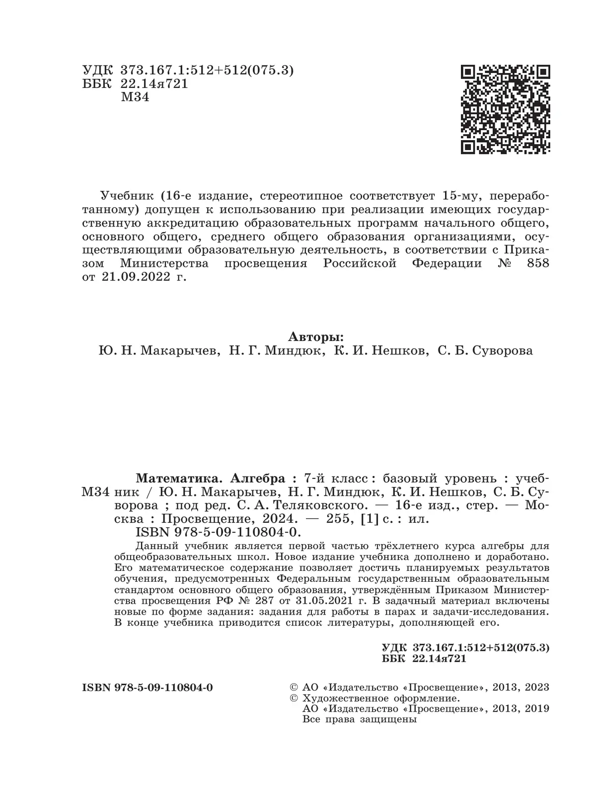 Учебник соответсвует ФГОС 2021 г. Данный учебник является первой частью трёхлетнего курса алгебры для общеобразовательных школ. Новое издание учебника дополнено и доработано.