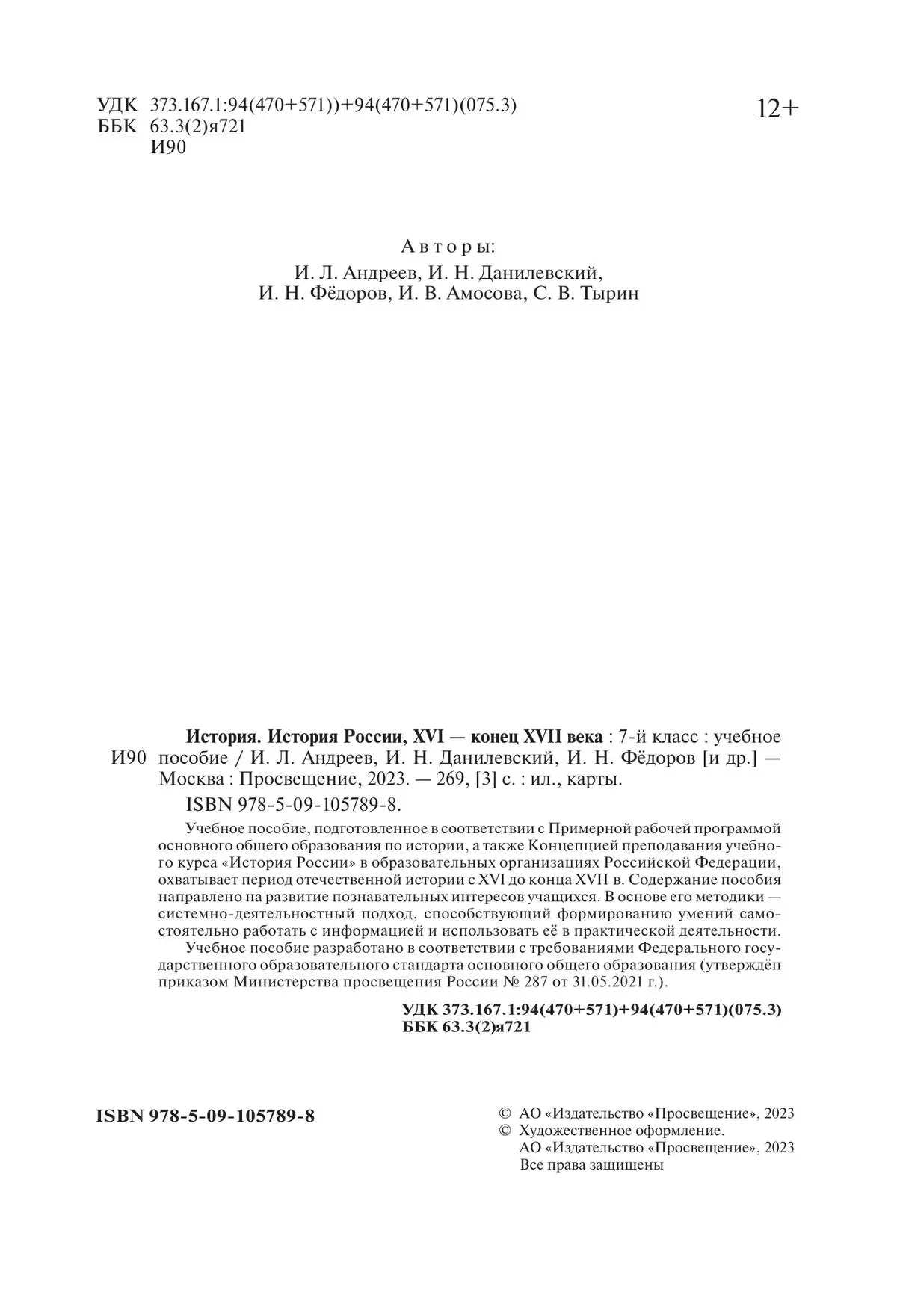 История России. 7 класс. XVI - конец XVII века. Учебное пособие. (Просвещение)