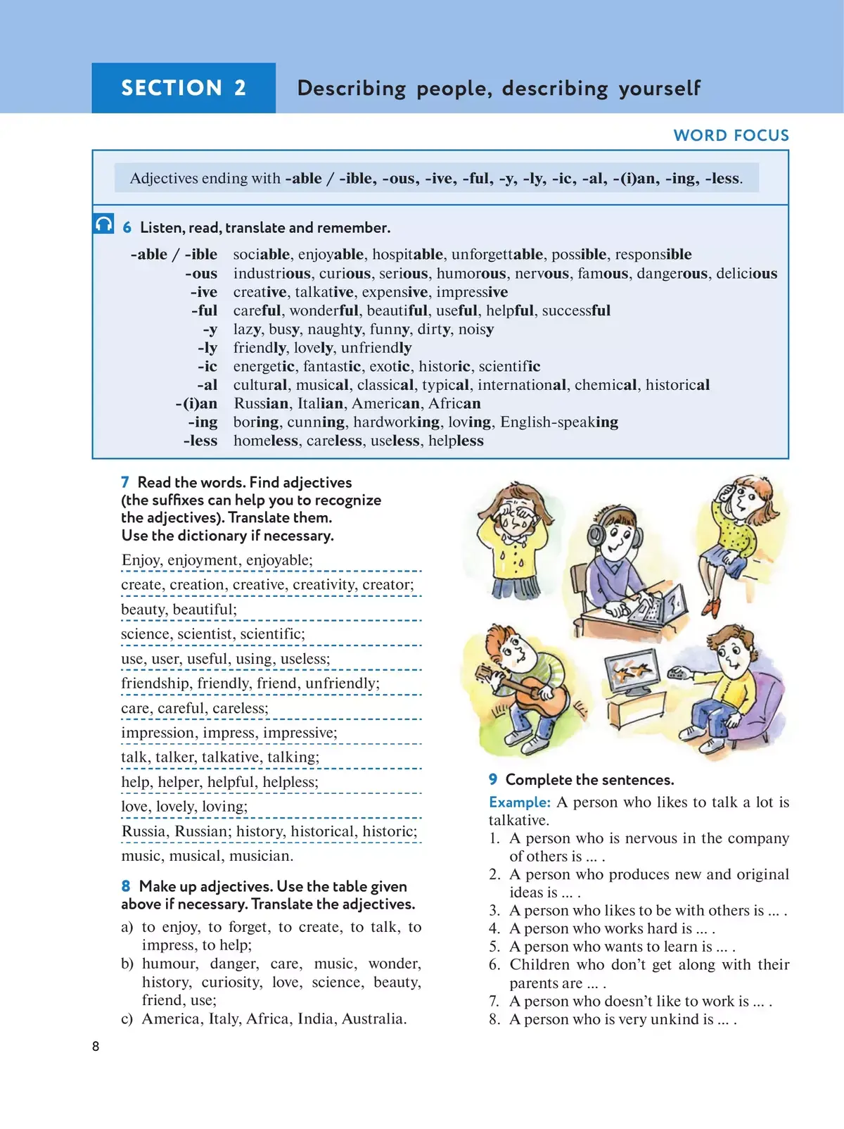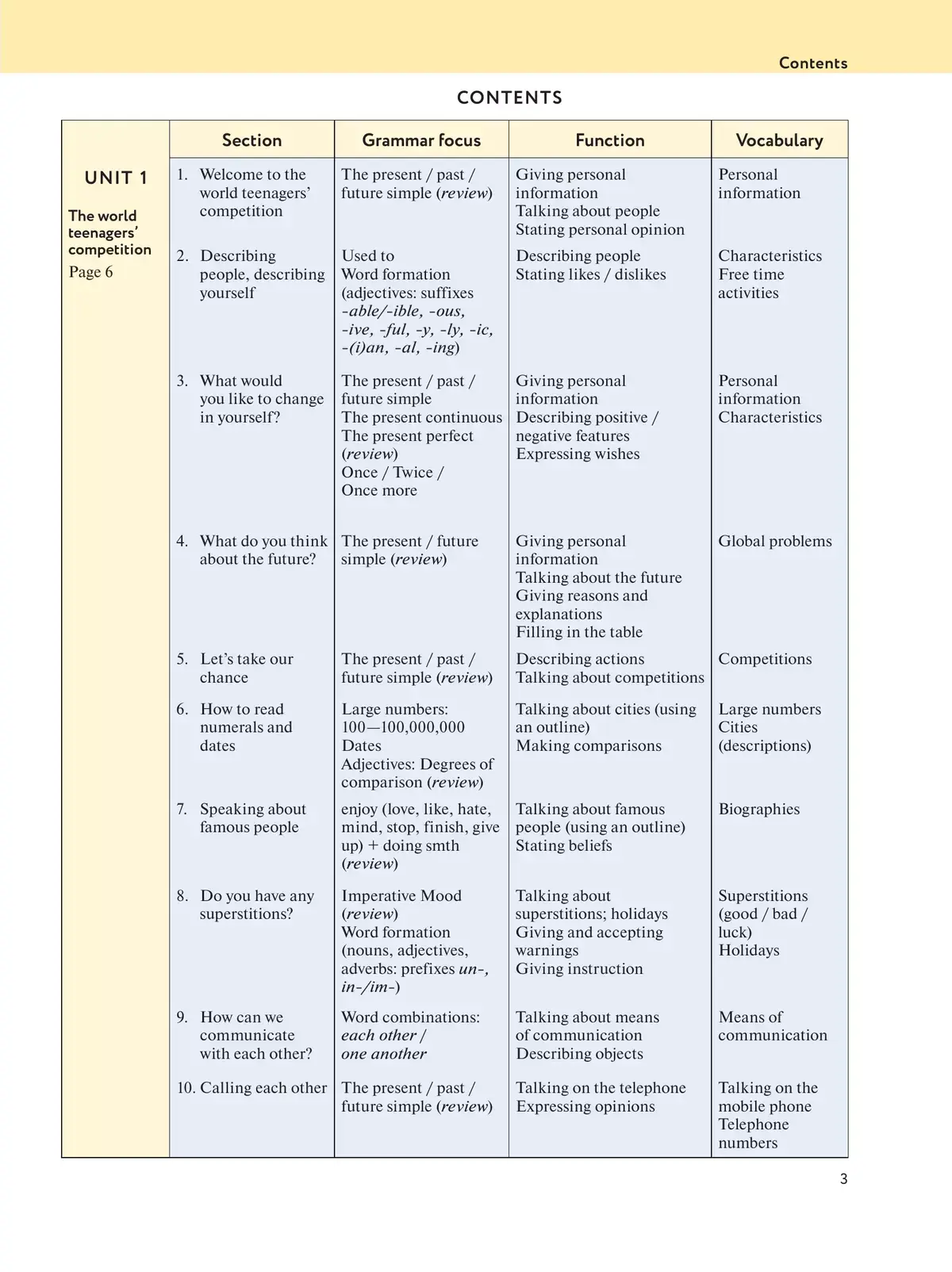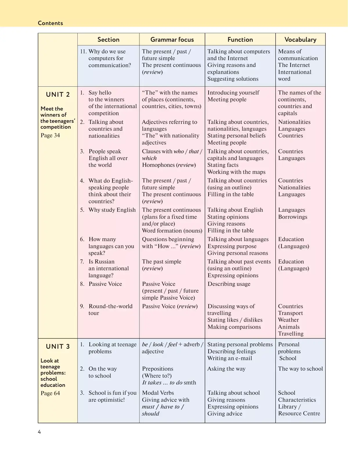 Разделы завершаются заданиями для самопроверки (Progress Check), позволяющими учащимся оценить достигнутый ими уровень овладения языком.