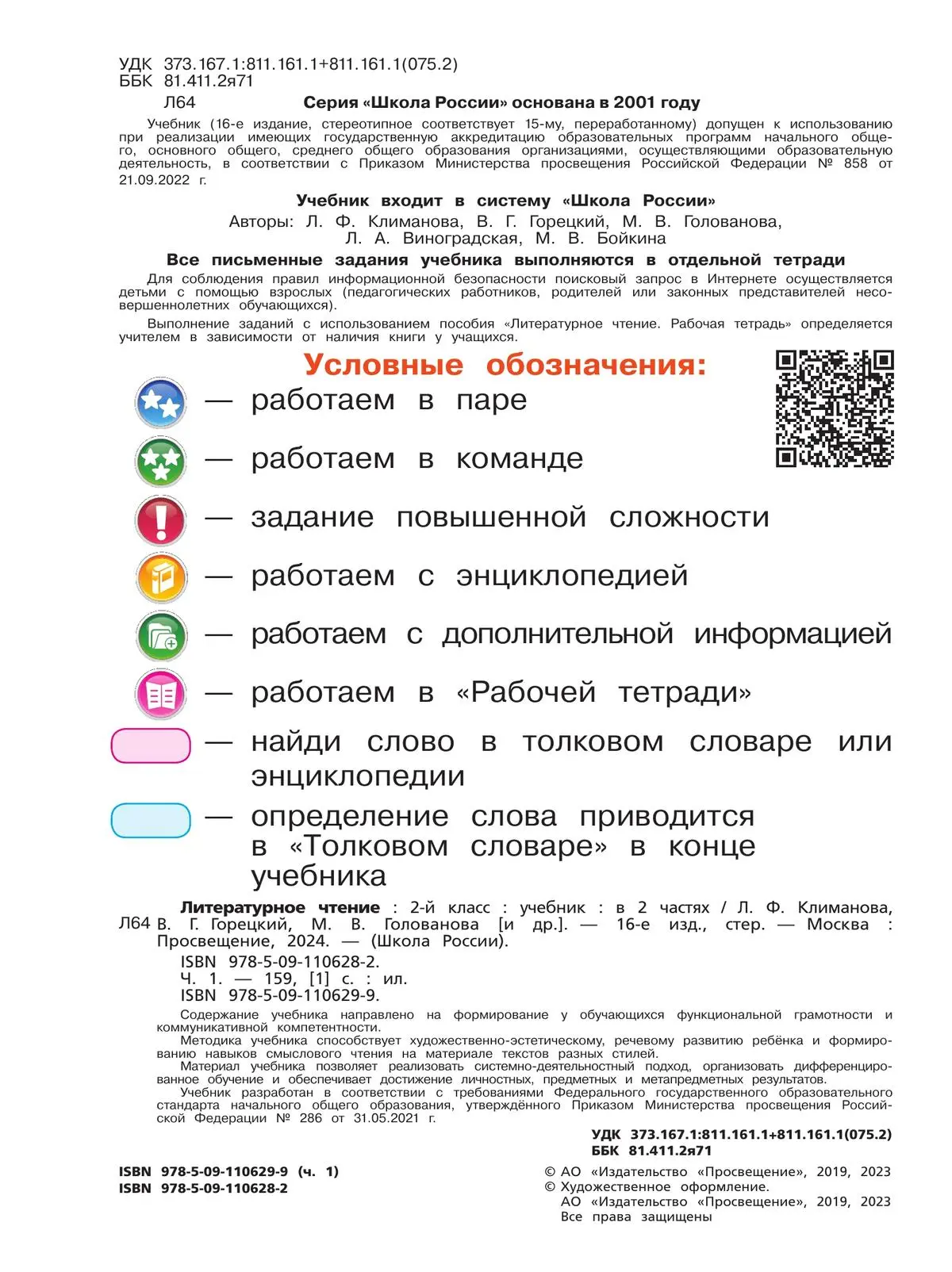 Учебник соответствует ФГОС 2021 г. Учебник «Литературное чтение» входит в образовательную систему «Школа России».