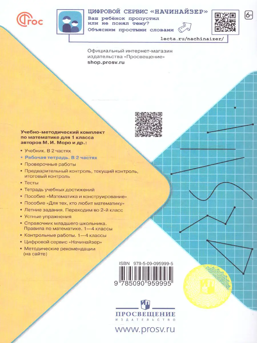 Рабочая тетрадь по математике для 1 класса (в 2 частях) подготовлена к учебнику «Математика. 1 класс» (авт. М. И. Моро, С. И. Волкова, С. В. Степанова), доработанному в соответствии с требованиями Федерального государственного образовательного стандарта начального общего образования (Приказ Министерства просвещения РФ № 286 от 31.05.2021 г.).