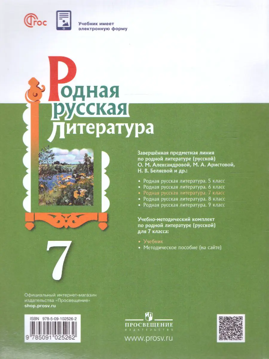 Учебник соответствует ФГОС 2021 г. Учебник реализует содержание Примерной рабочей программы для 7-го класса по учебному предмету «Родная литература (русская)», входящему в предметную область «Родной язык и родная литература».