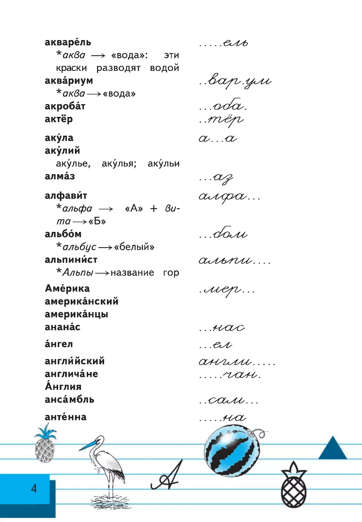 Данное пособие предназначено для учащихся общеобразовательных организаций. Учебное пособие содержит около тысячи слов из активного словаря учащихся начальной школы.