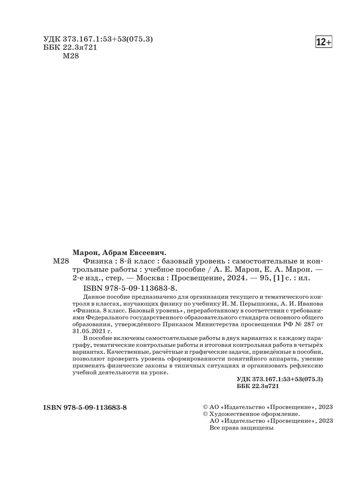 Данное пособие предназначено для организации текущего и тематического контроля в классах, изучающих физику по учебнику И. М. Перышкина, А. И. Иванова «Физика. 8 класс. Базовый уровень», переработанному в соответствии с требованиями Федерального государственного образовательного стандарта основного общего образования, утверждённого Приказом Министерства просвещения Российской Федерации № 287 от 31.05.2021 г.