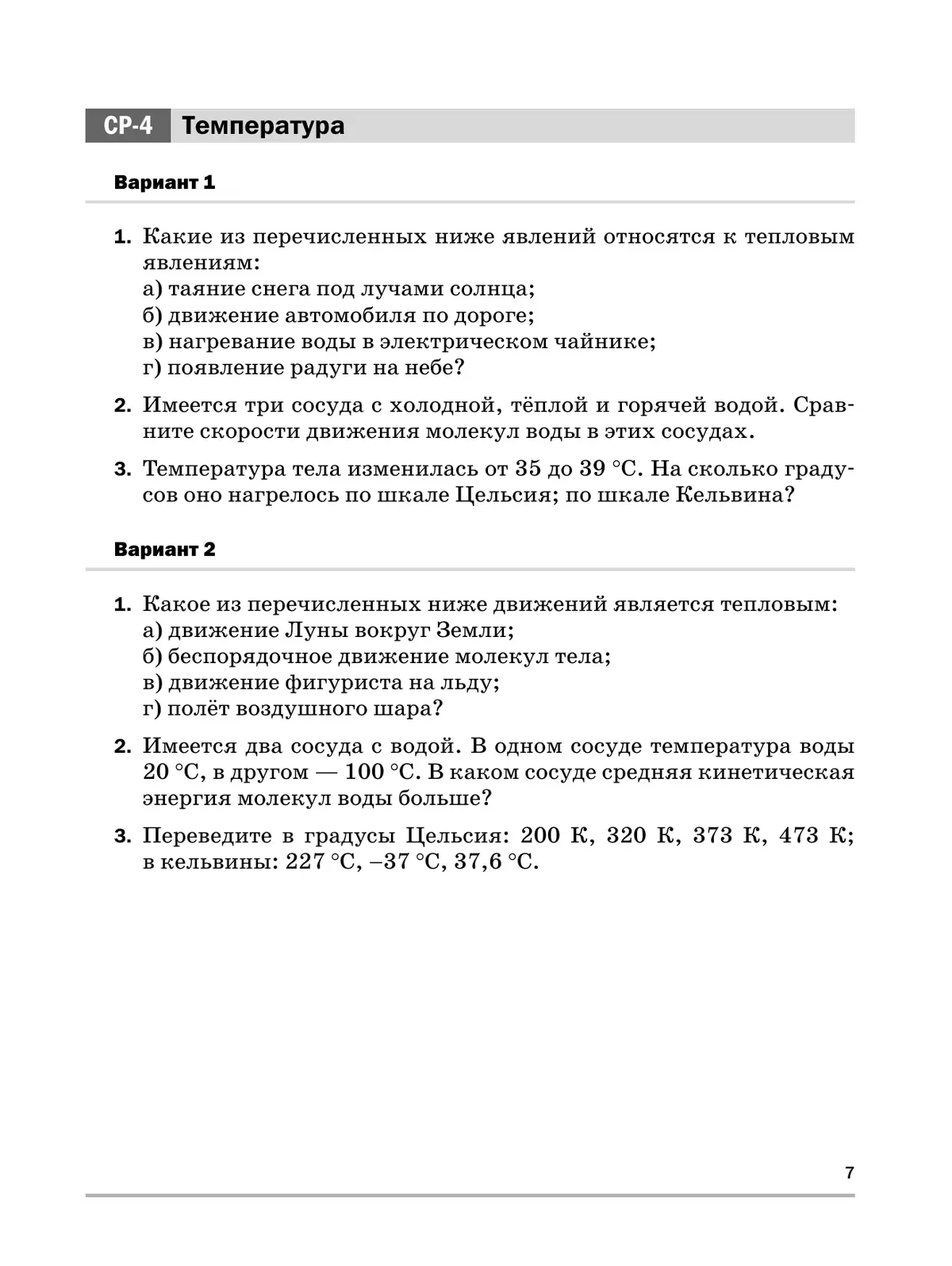 Качественные, расчётные и графические задачи, приведённые в пособии, позволяют проверить уровень сформированности понятийного аппарата, умение применять физические законы в типичных ситуациях и организовать рефлексию учебной деятельности на уроке.
