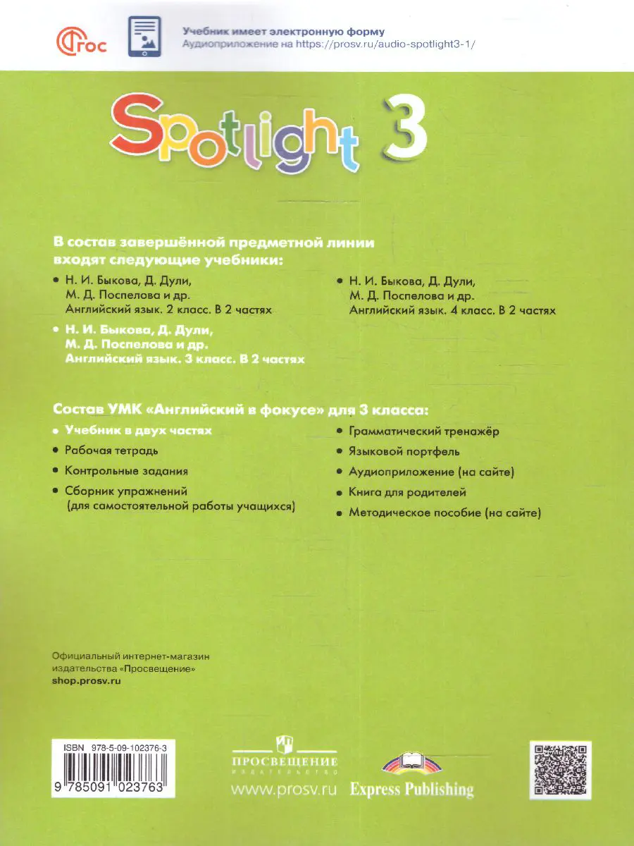 Учебник соответствует ФГОС 2021 г. Учебник является центральным элементом учебно-методического комплекта серии «Английский в фокусе» для 3 класса общеобразовательных организаций.