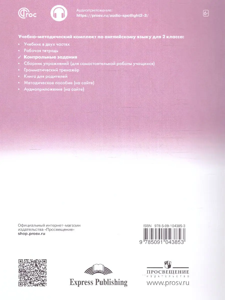 Сборник контрольных заданий является компонентом учебно-методического комплекта серии «Английский в фокусе» для учащихся 2 классов общеобразовательных организаций.