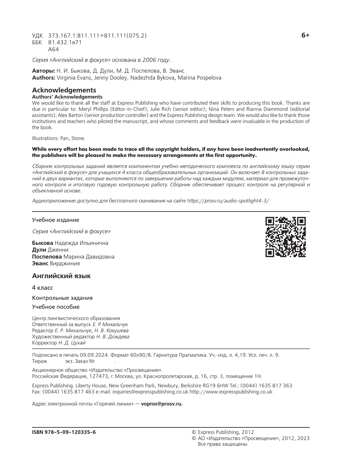 Сборник контрольных заданий является компонентом учебно-методического комплекта по английскому языку серии «Английский в фокусе» для учащихся 4 класса общеобразовательных организаций.