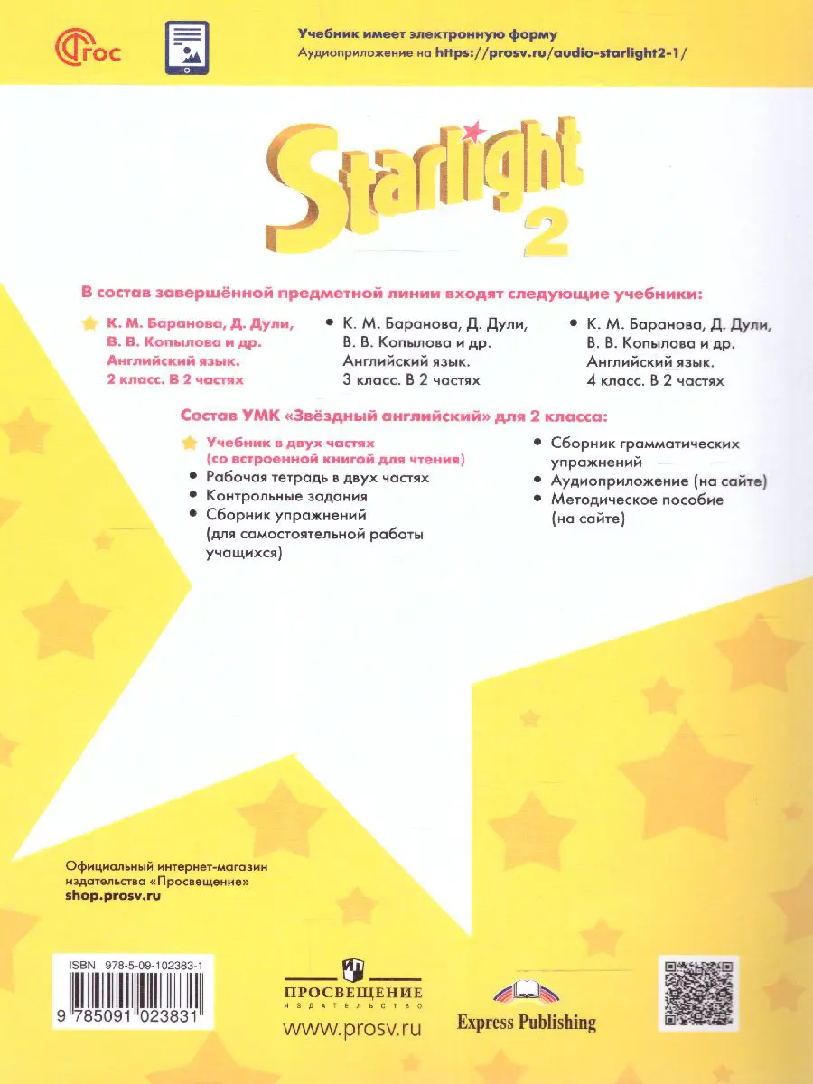 Учебник соответсвует ФГОС 2021 г. Учебник является основным компонентом УМК серии «Звёздный английский» для учащихся 2 класса общеобразовательных организаций и школ с углублённым изучением английского языка.