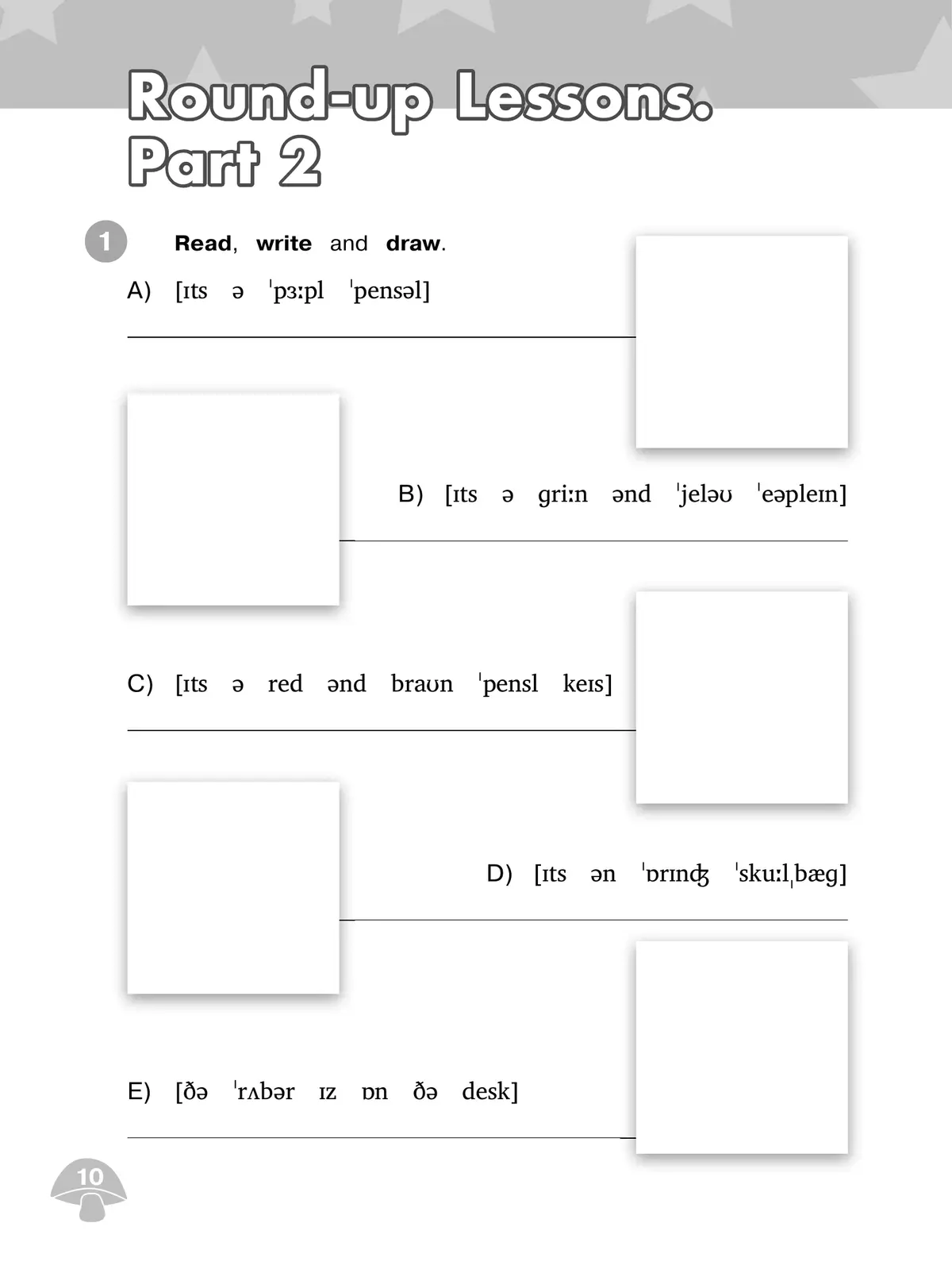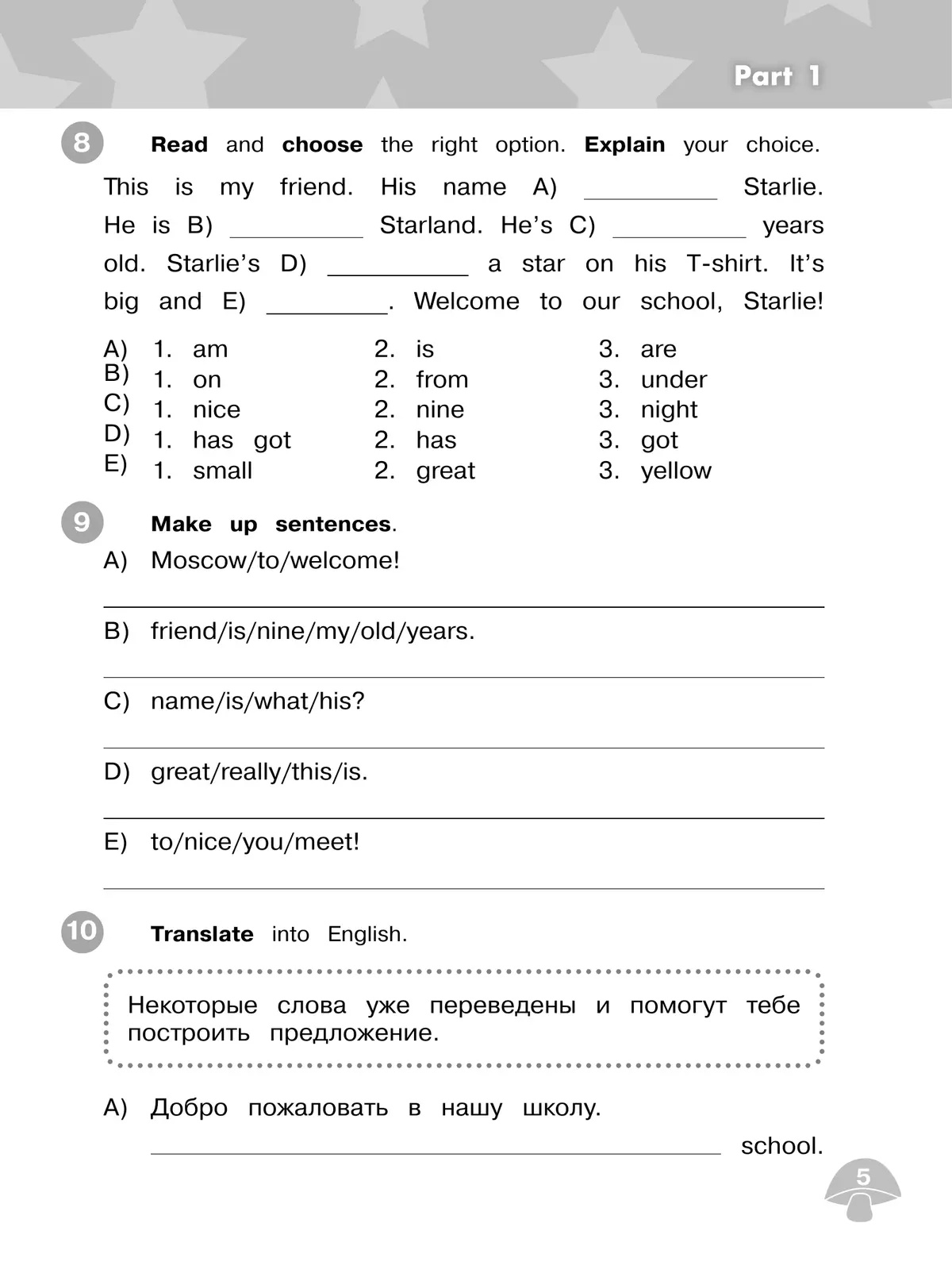 Он предлагает младшим школьникам выполнить задания, полностью основанные на языковом материале учебника «Звёздный английский».