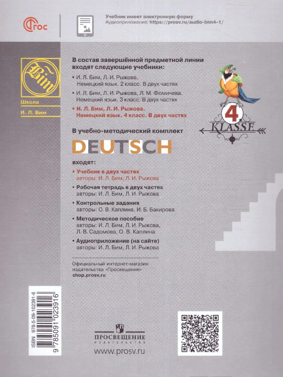 Учебник соответсвует ФГОС 2021 г. Учебно-методический комплект «Немецкий язык. 4 класс» предназначен для учащихся 4 класса общеобразовательных организаций.