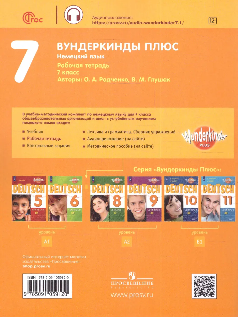 Рабочая тетрадь авторов О. А. Радченко, В. М. Глушака является составной частью УМК «Немецкий язык. 7 класс» серии «Вундеркинды Плюс».