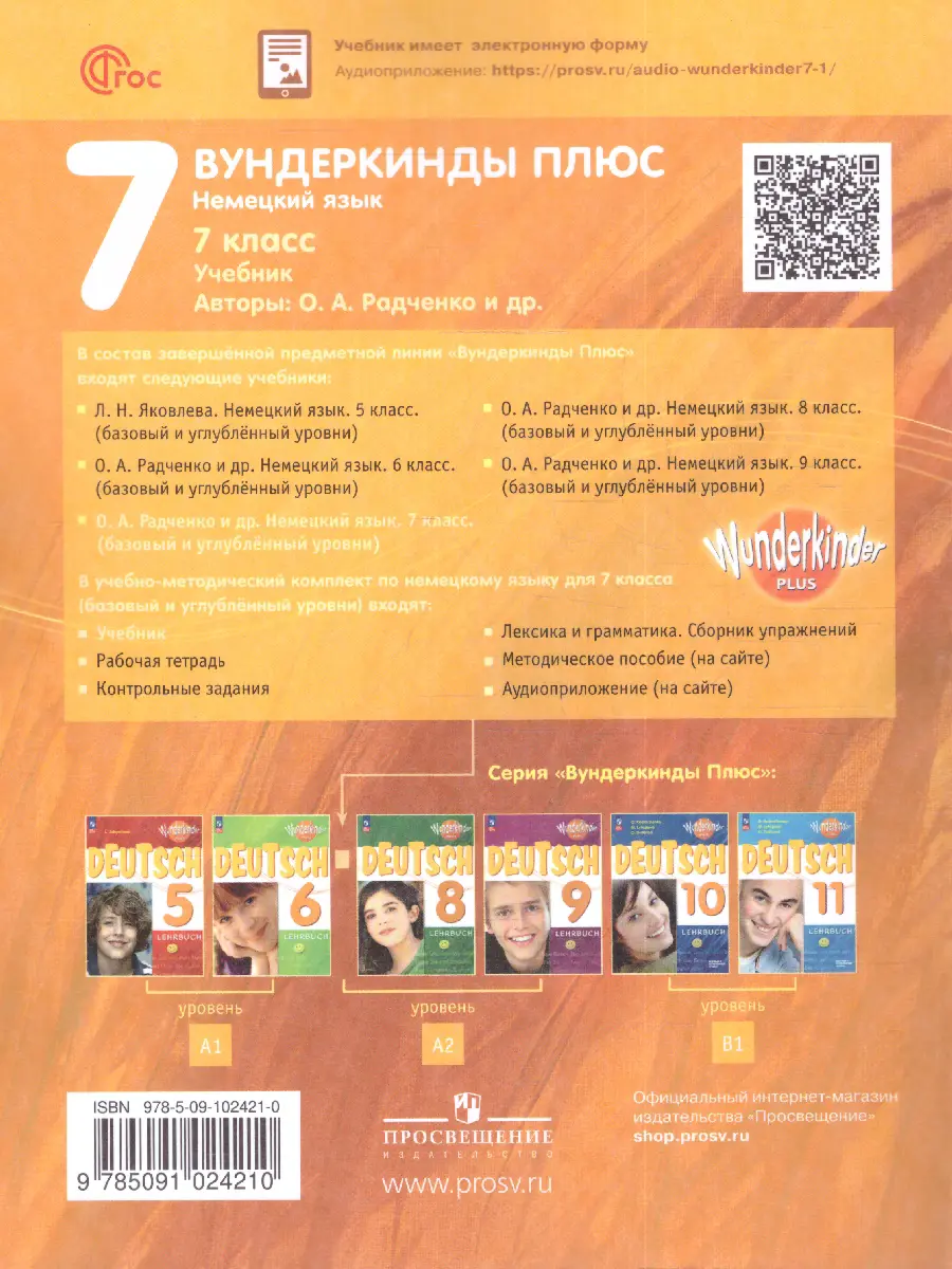 Учебник соответсвует ФГОС 2021 г. Учебник является составной частью УМК «Немецкий язык» серии «Вундеркинды Плюс» для 7 класса школ с базовым и углублённым изучением немецкого языка.