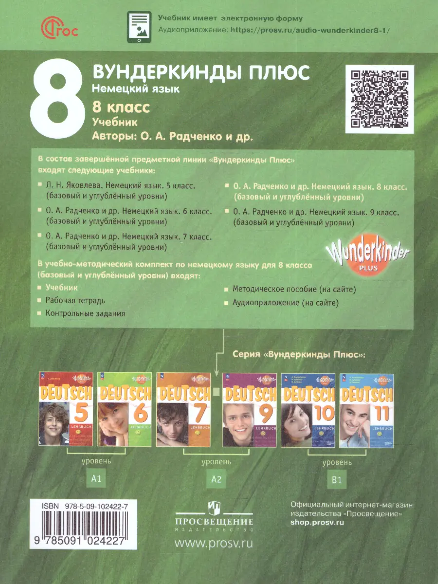 Учебник соответсвует ФГОС 2021 г. Учебник является составной частью УМК «Немецкий язык» серии «Вундеркинды Плюс» для 8 класса школ с базовым и углублённым изучением немецкого языка.