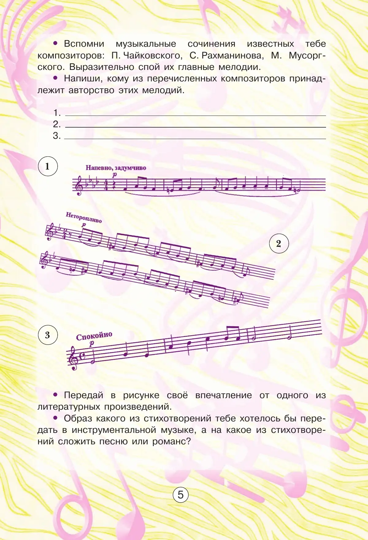 Творческая тетрадь входит в учебно-методический комплект «Музыка» для 5 класса общеобразовательных организаций авторов Г. П. Сергеевой, Е. Д. Критской.