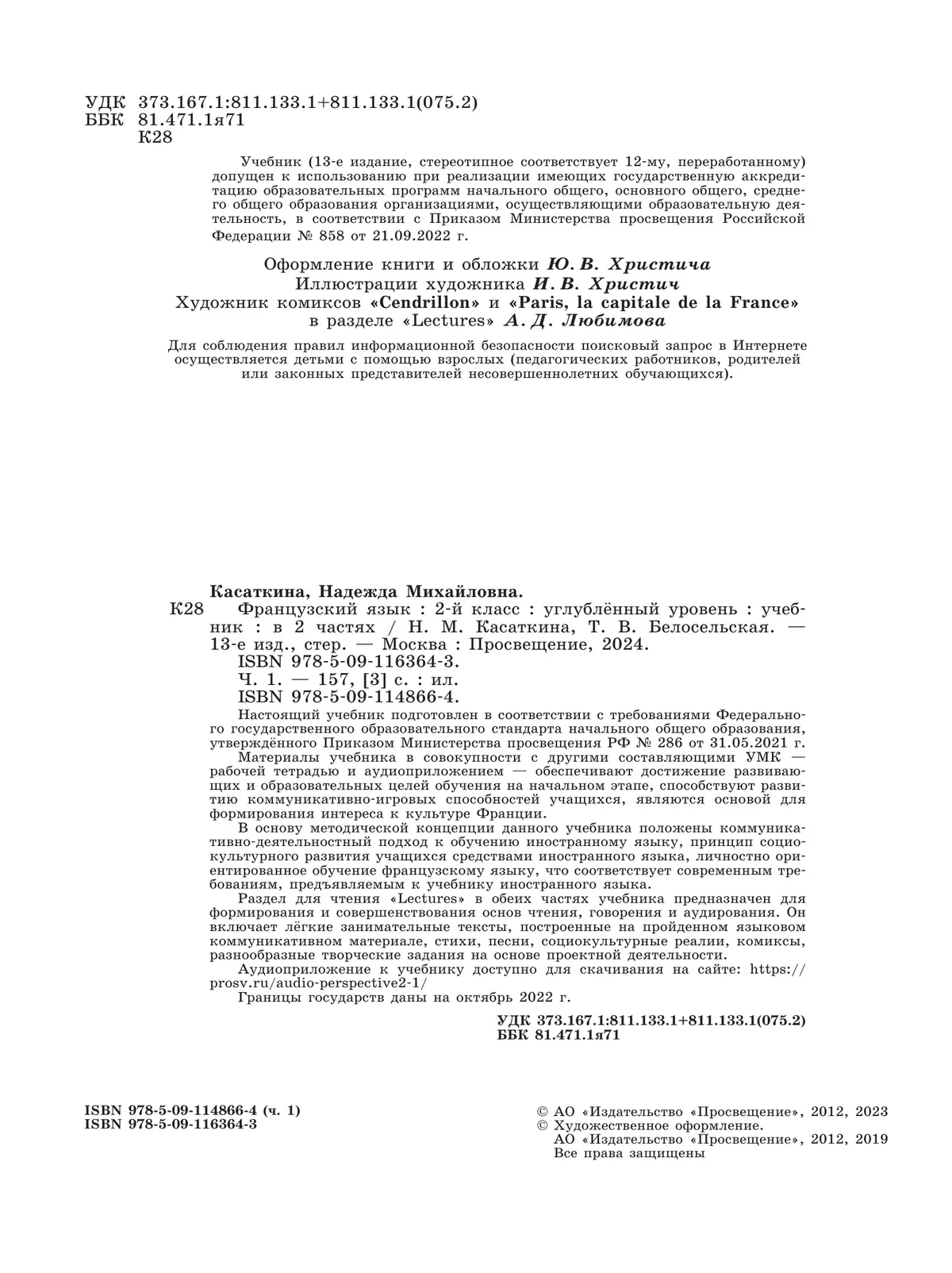 Учебник соответсвует ФГОС 2021 г. Учебник «Французский язык. 2 класс. Углублённый уровень. В двух частях» предназначен для учащихся 2 класса общеобразовательных организаций и школ с углублённым изучением французского языка.