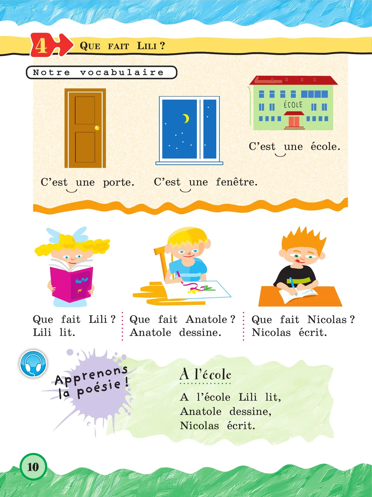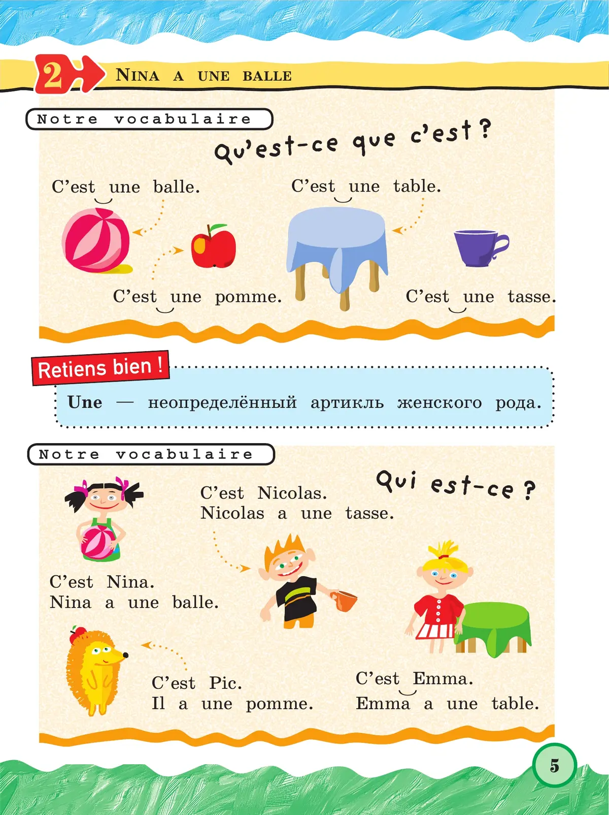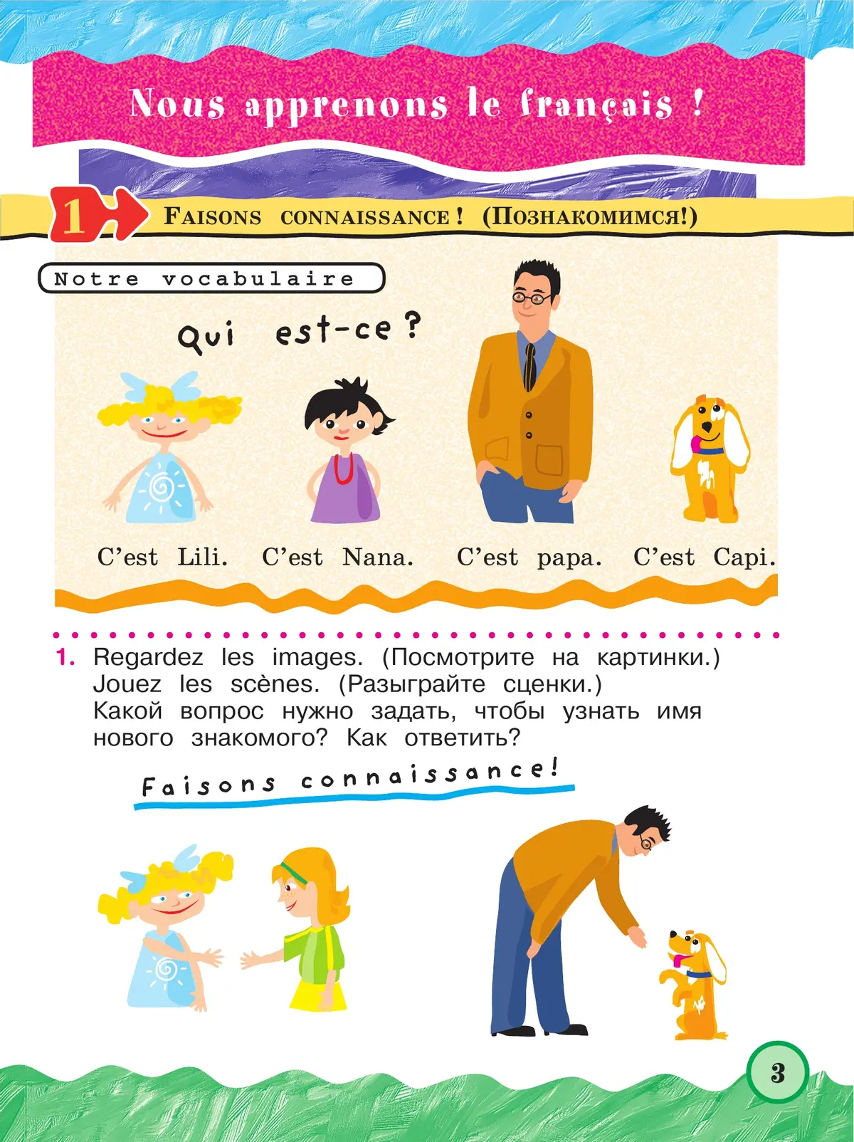Материалы учебника в совокупности с другими составляющими УМК — рабочей тетрадью и аудиоприложением — обеспечивают достижение развивающих и образовательных целей обучения наначальном этапе, развитию коммуникативно-игровых способностей учащихся, являются основой для формирования интереса к культуре Франции.