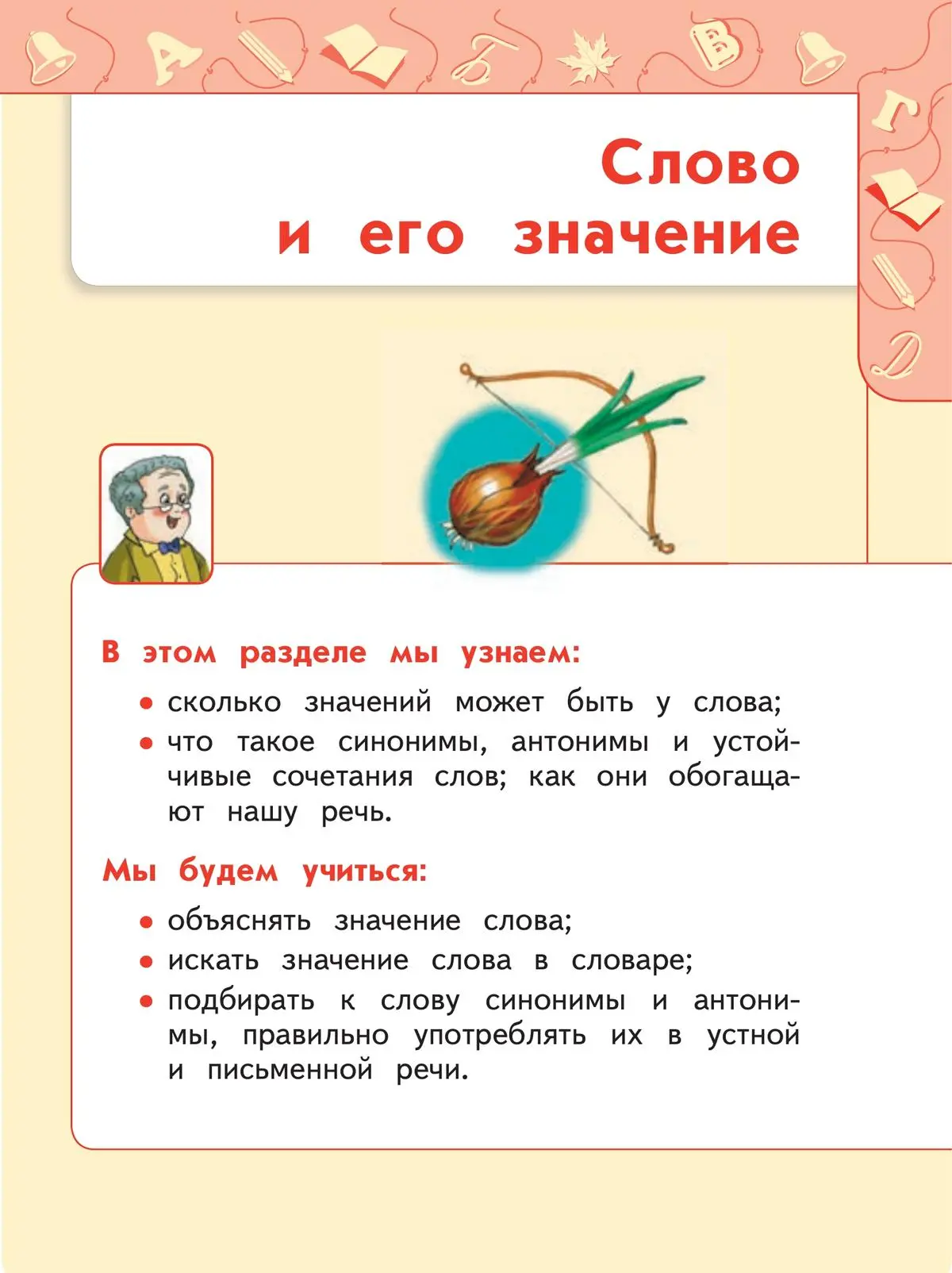 Слово рассматривается в учебнике как наглядно-образная модель, представляющая единство звукобуквенной формы и лексического значения, что позволяет учащимся различать «слово» и «предмет», «форму» и содержание».