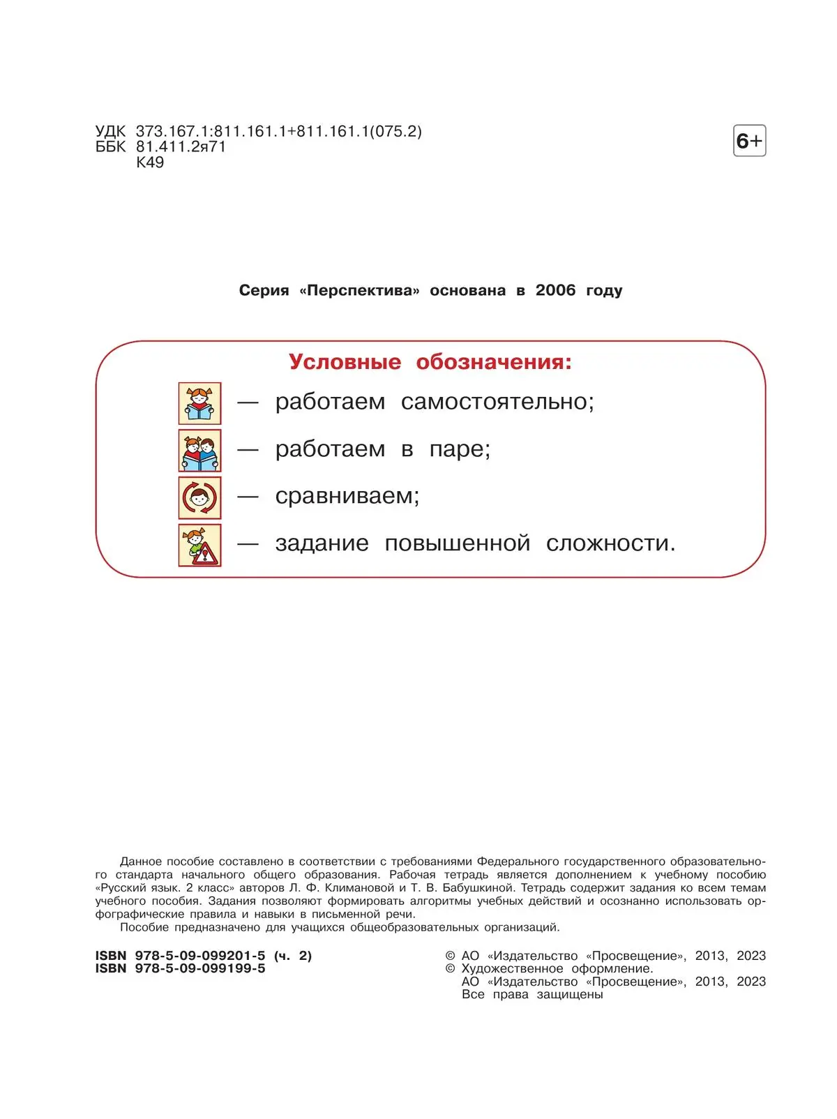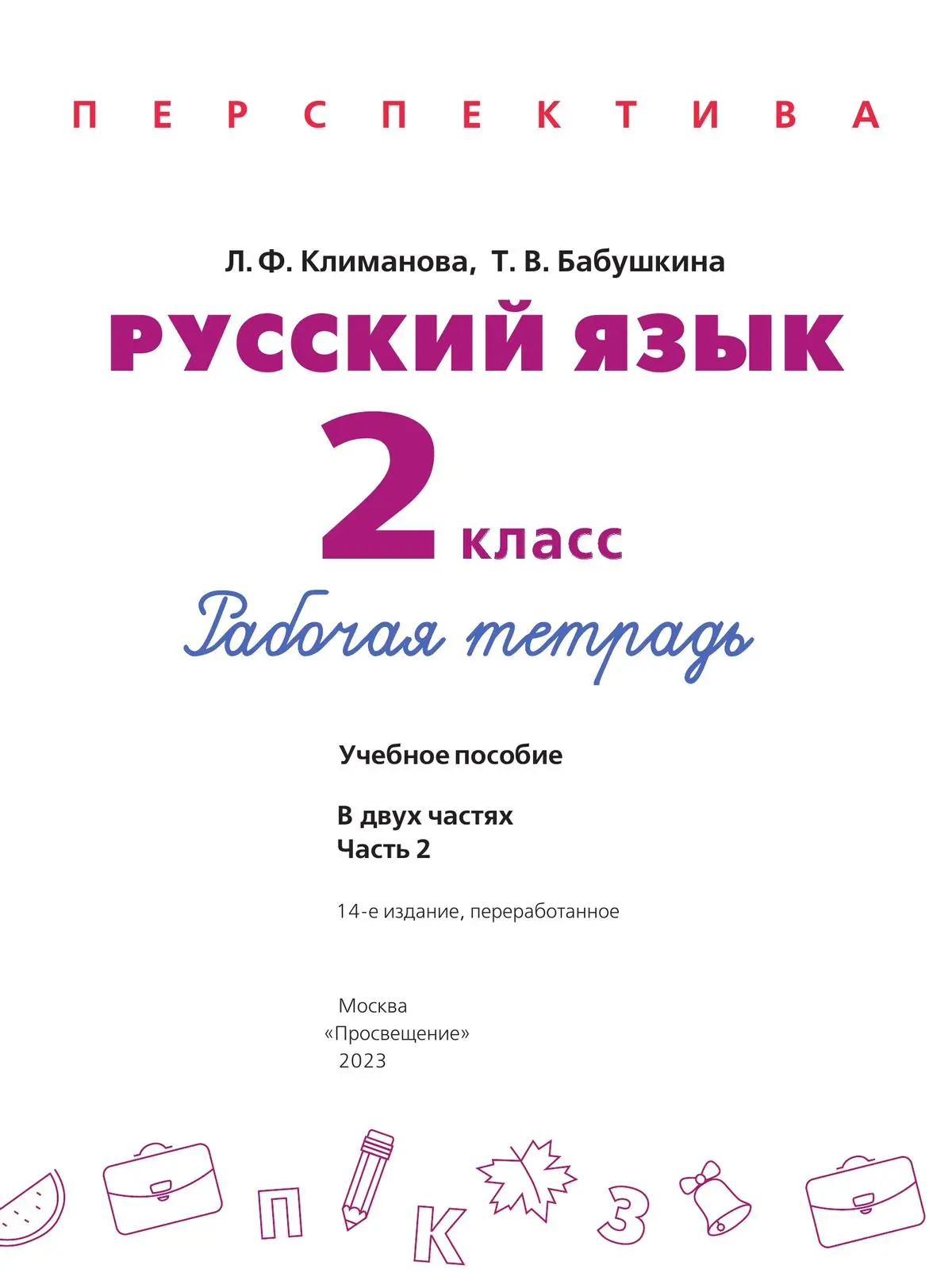 Данное пособие составлено в соответствии с требованиями Федерального государственного образовательного стандарта начального общего образования. Рабочая тетрадь является дополнением к учебному пособию «Русский язык. 2 класс» авторов Л. Ф. Климановой и Т. В. Бабушкиной.