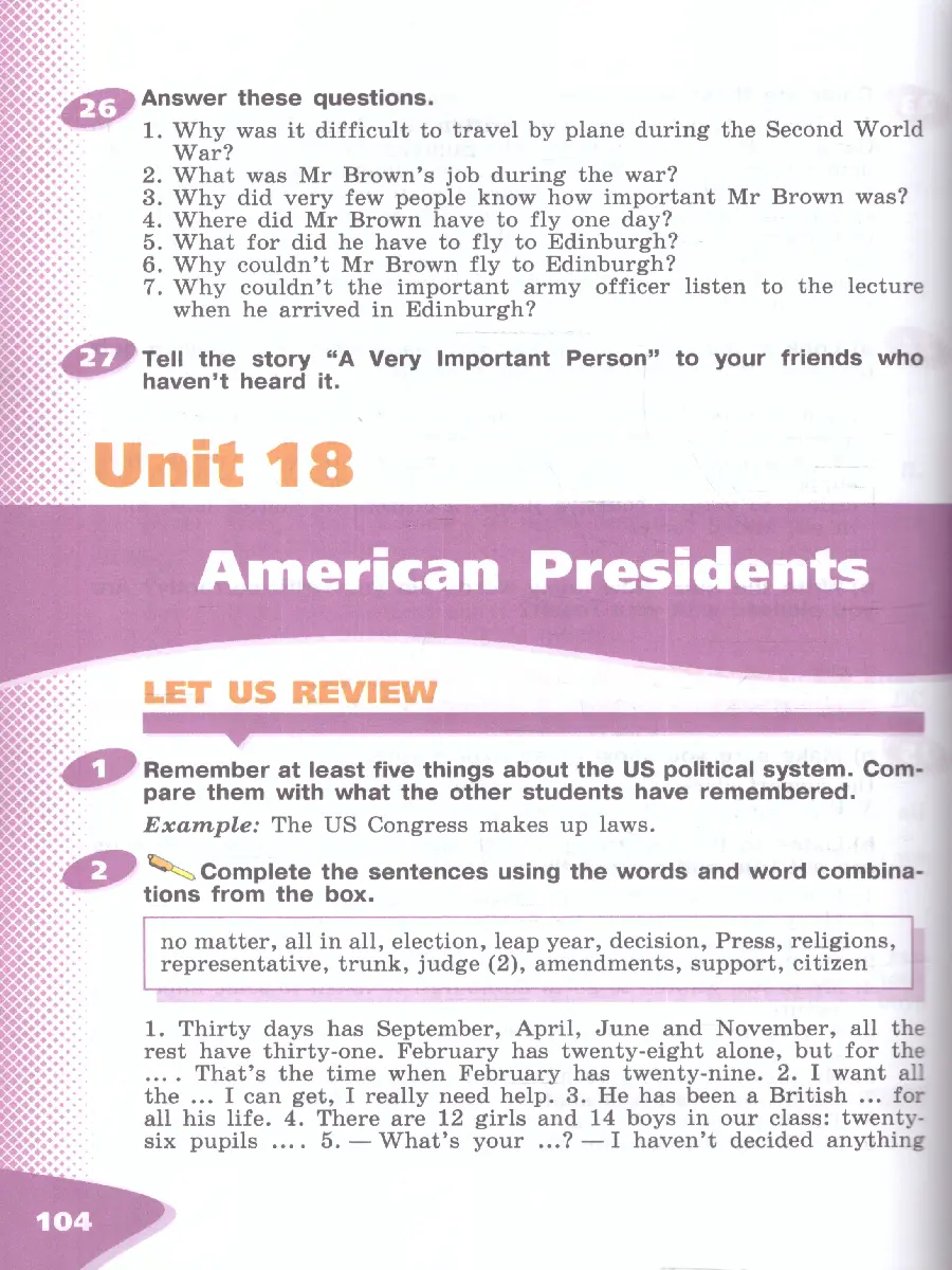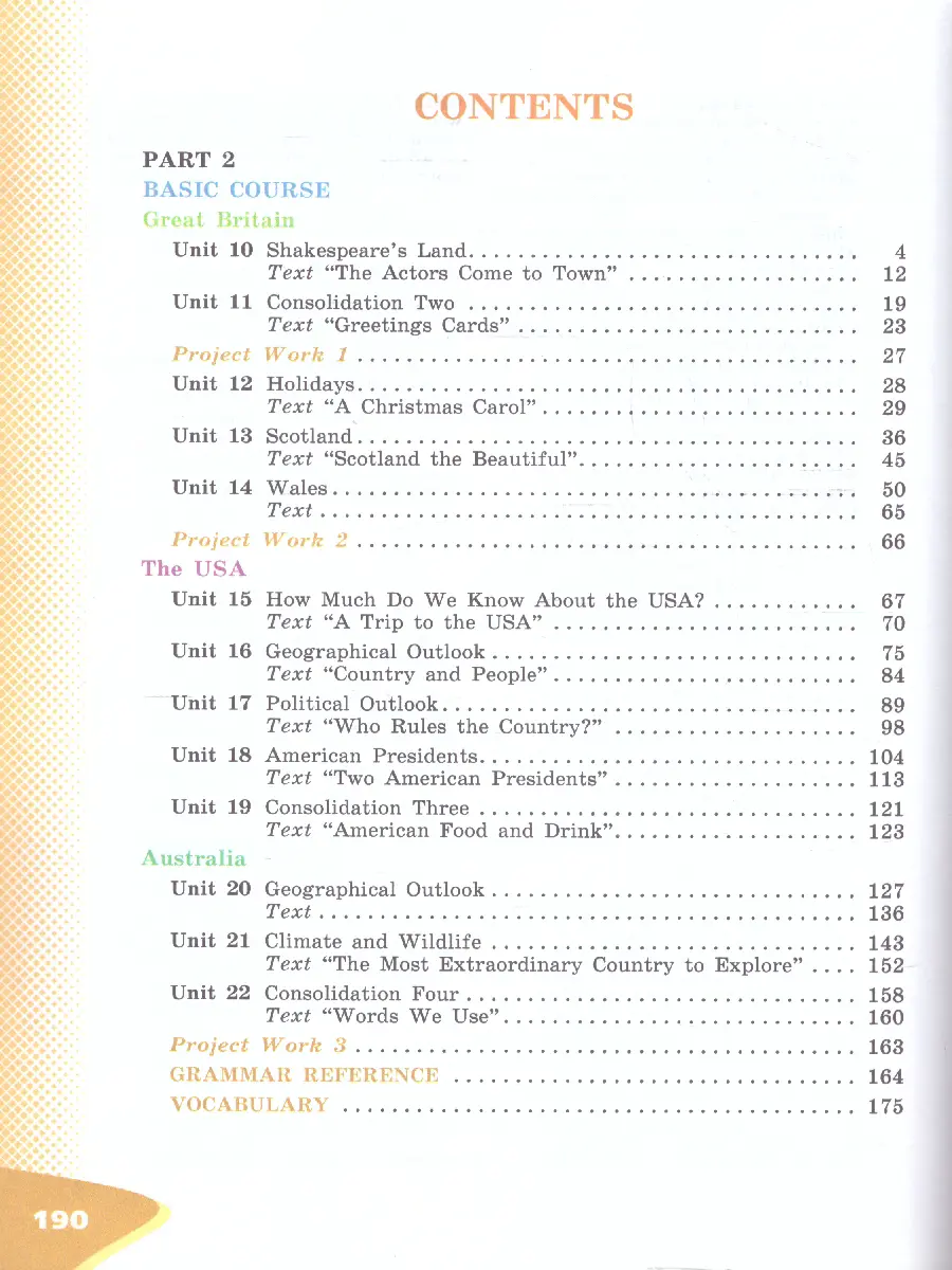 Учебное пособие построено на цикличном повторении пройденного ранее материала. Одним из нововведений в учебном пособии для 6 класса является наличие раздела Project Work.