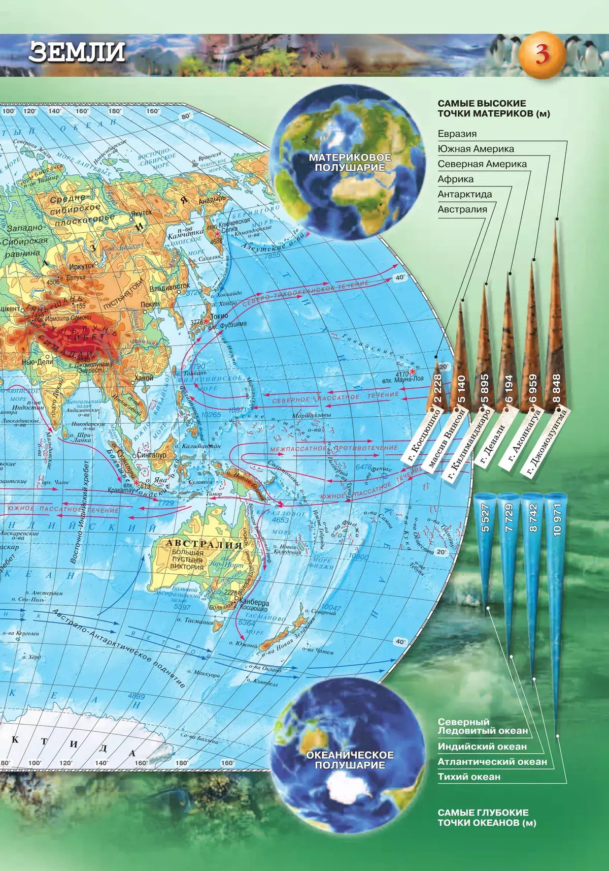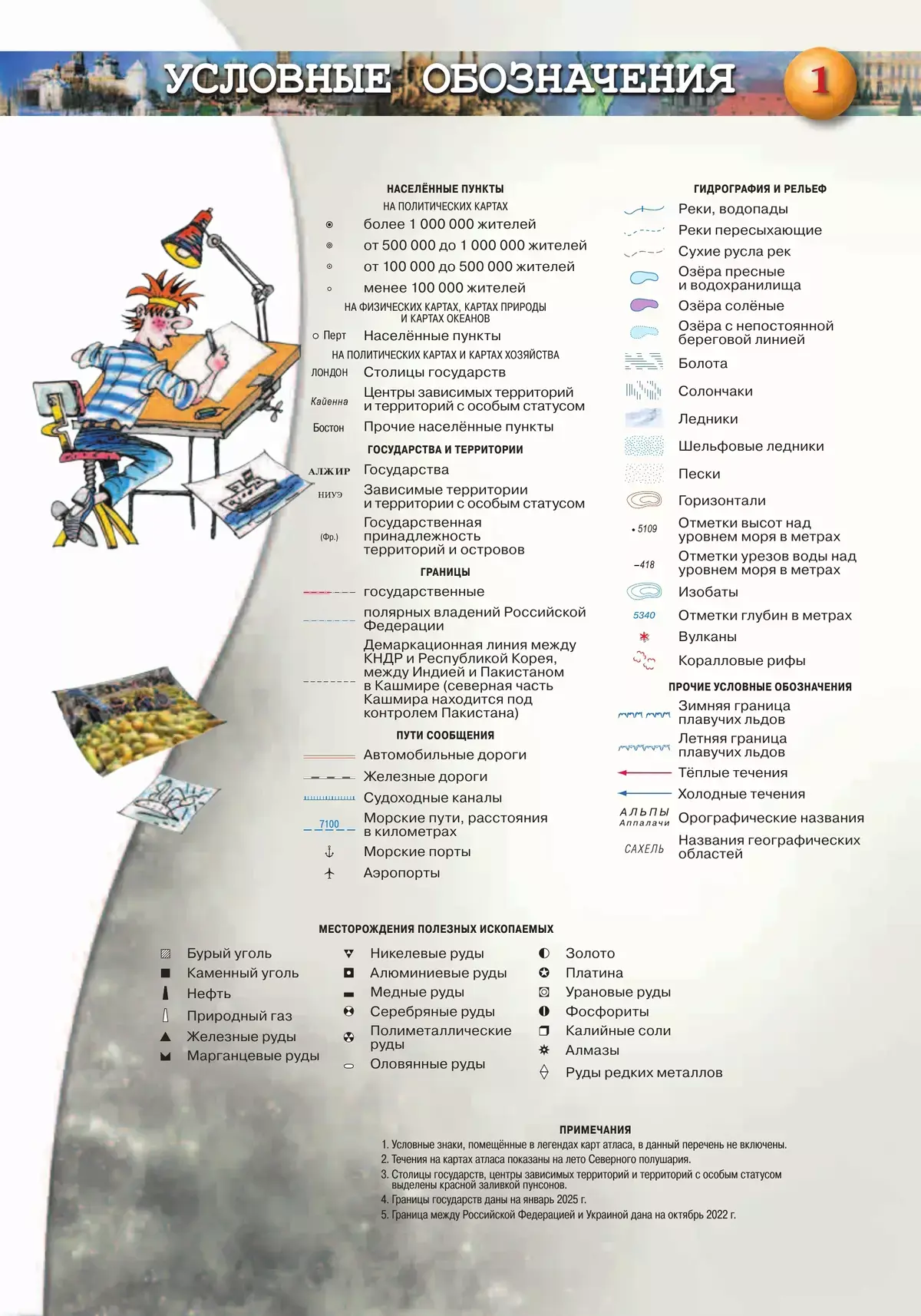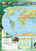 Тематические развороты атласа дополняют разнообразные иллюстрации: схемы, диаграммы, фотографии, делающие освоение картографической информации более простым и увлекательным.