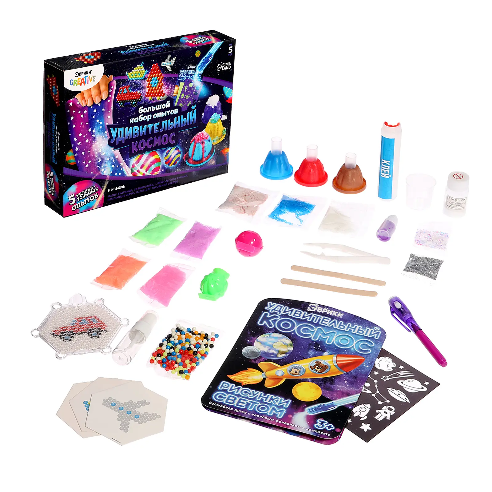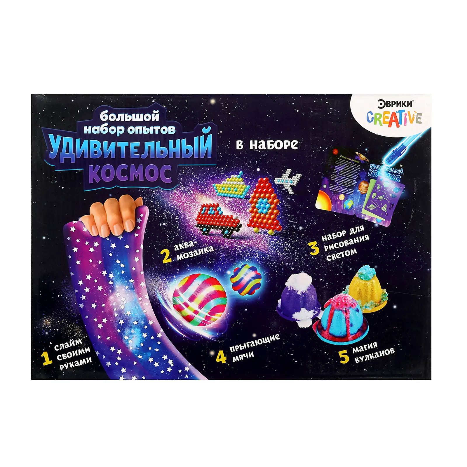 Большой набор торговой марки «Эврики» вмещает в себя 5 увлекательных опытов! Ребёнок самостоятельно сможет: