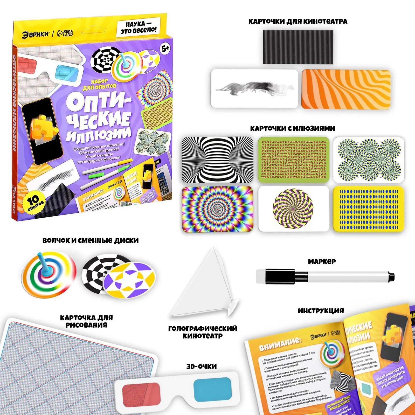 Особенности детского набора для опытов «Оптические иллюзии»: