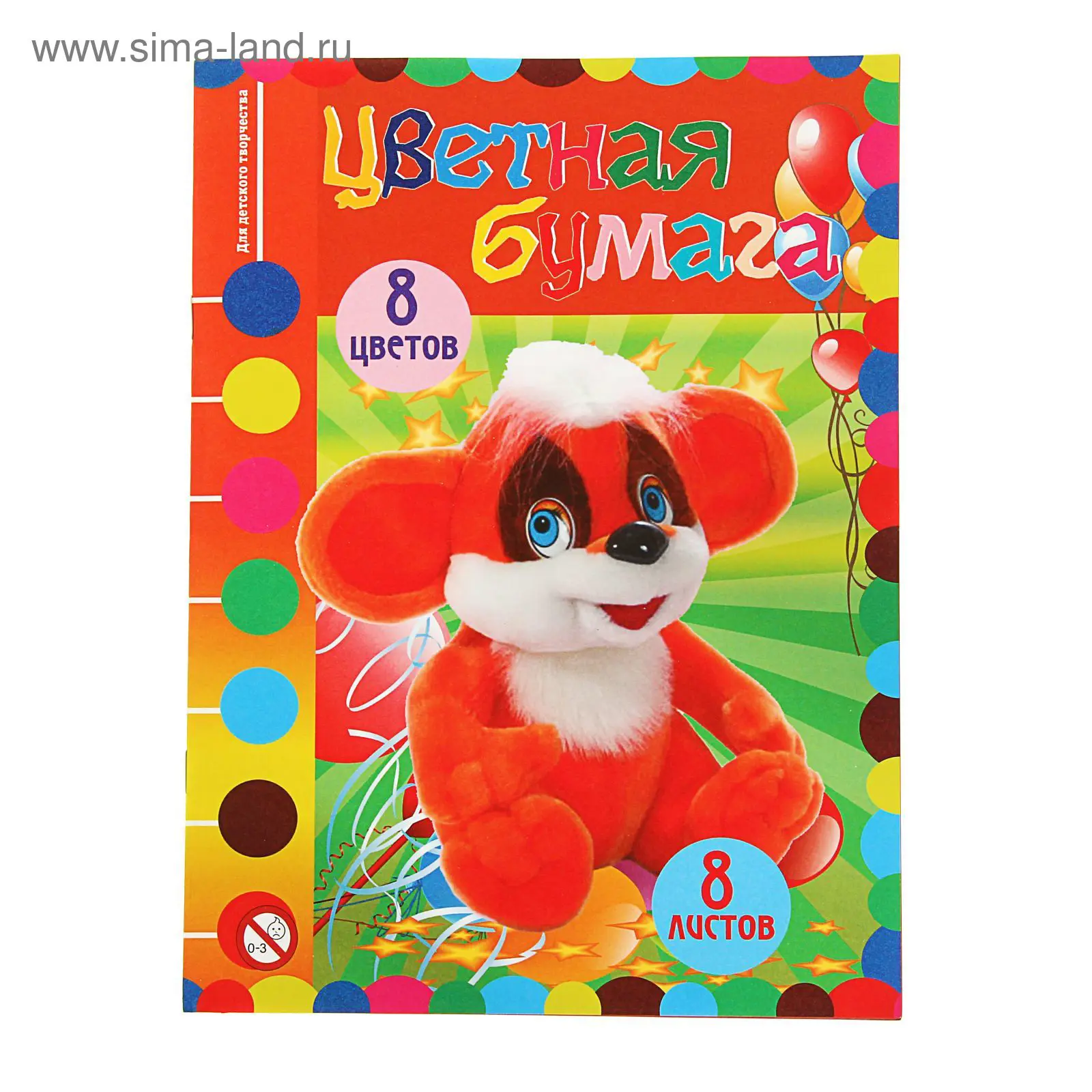 Бумага цветная А4, 8 л., 8 цв., газетная, двусторонняя, на скобе. Пушистик