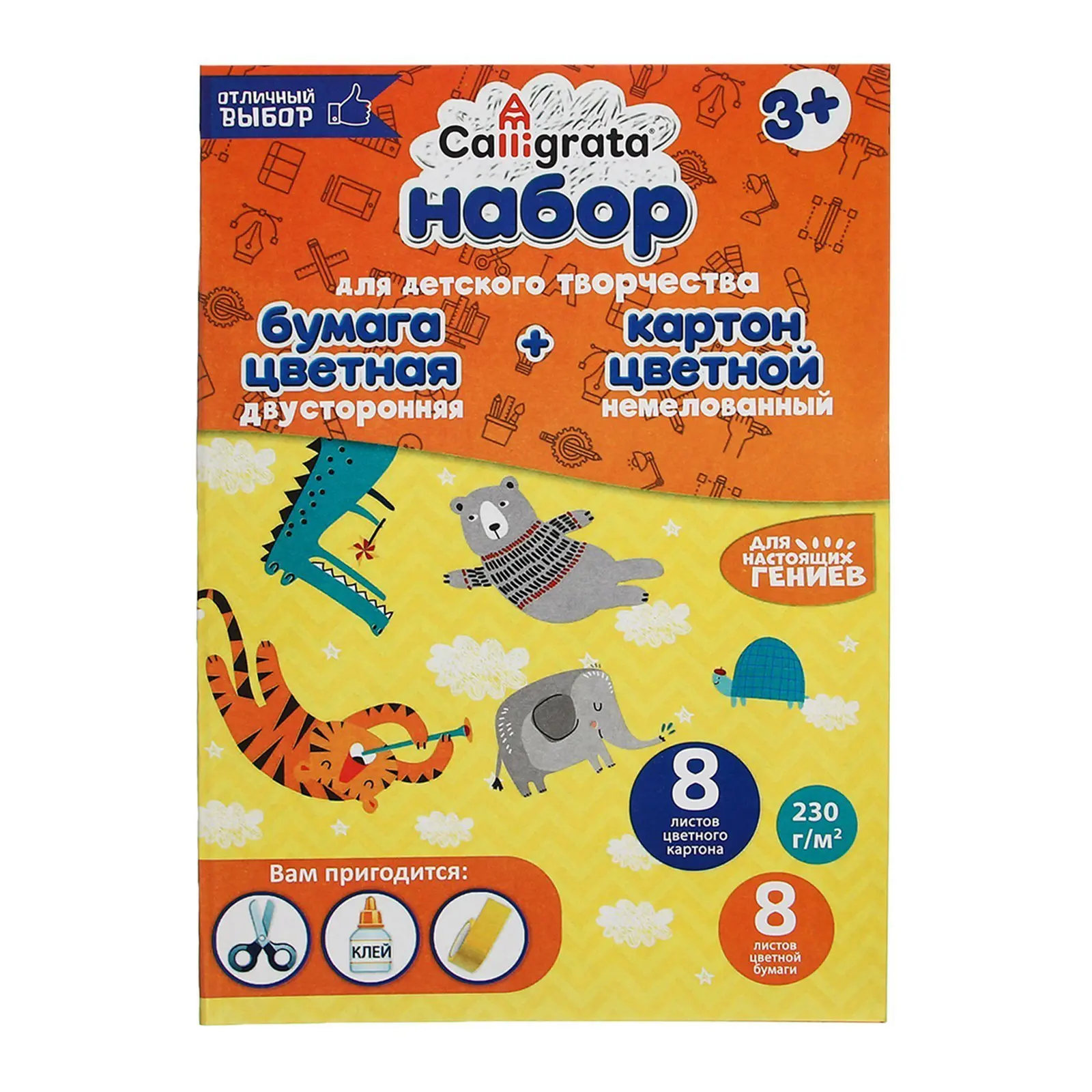 Набор А4. Картон цветной 8 л., 8 цв., немелованный. Бумага цветная 8 л, 8 цв., двухсторонняя. Calligrata