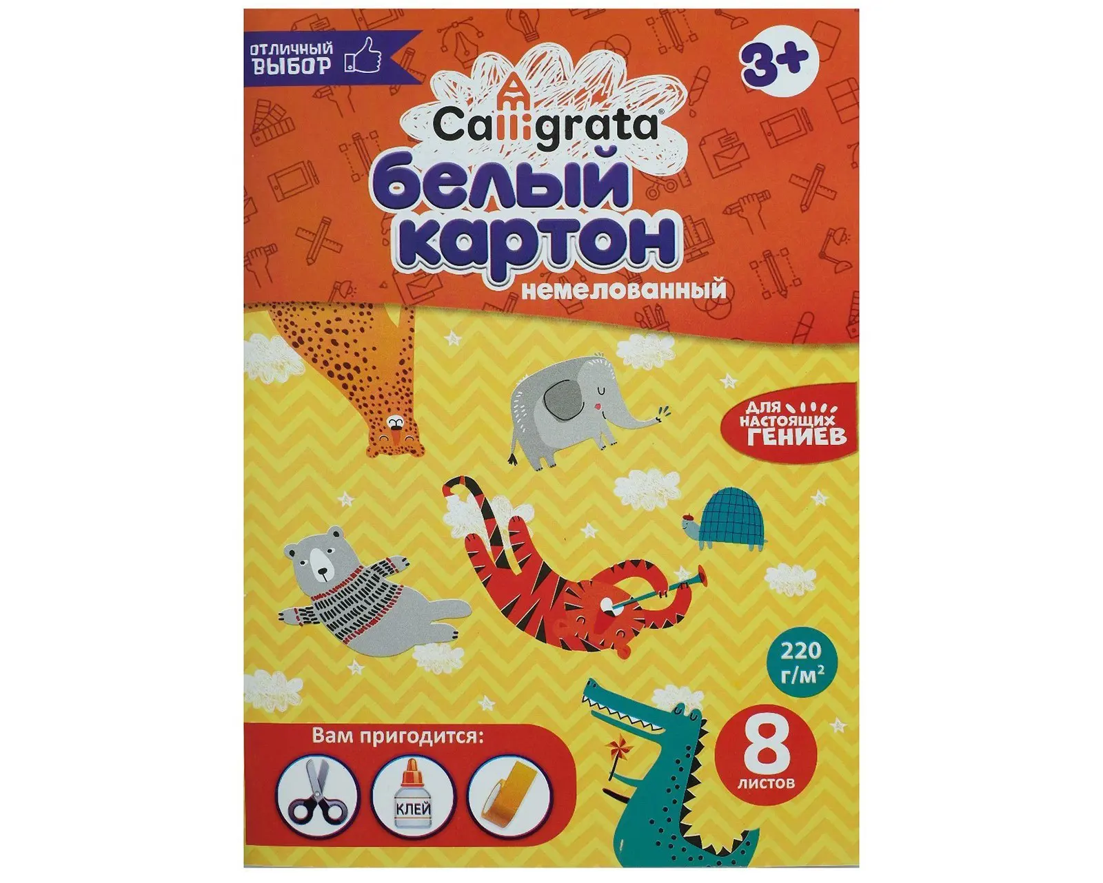 Картон белый, А4, 8 л., немелованный, односторонний, 220г/м2, в папке Calligrata