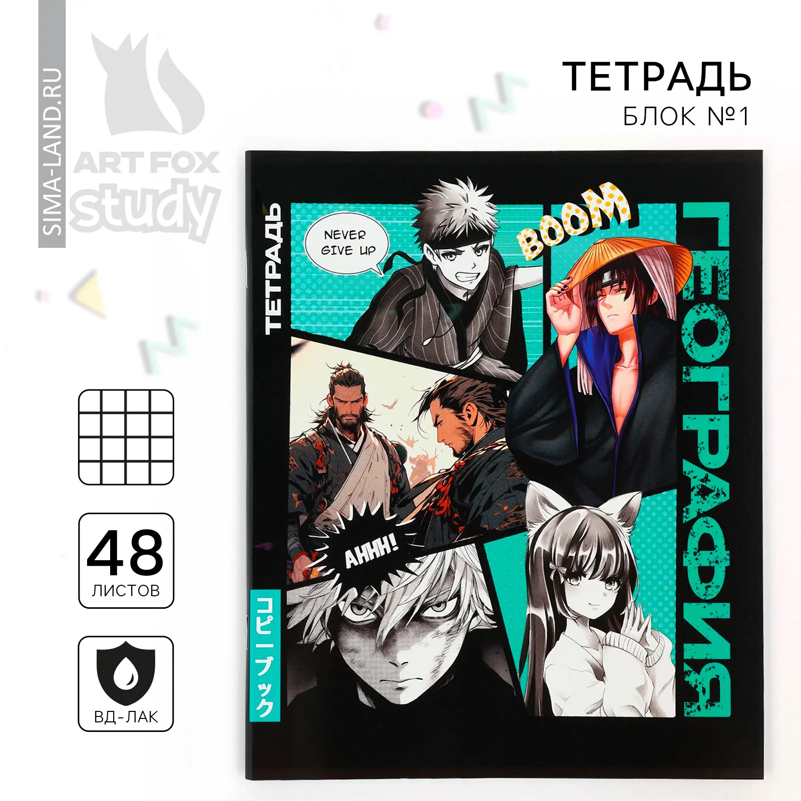 Тетрадь 48 листов предметная, клетка, обложка мелованный картон, блок офсет, белизна 95%. «1 сентября: Аниме Комикс. География»