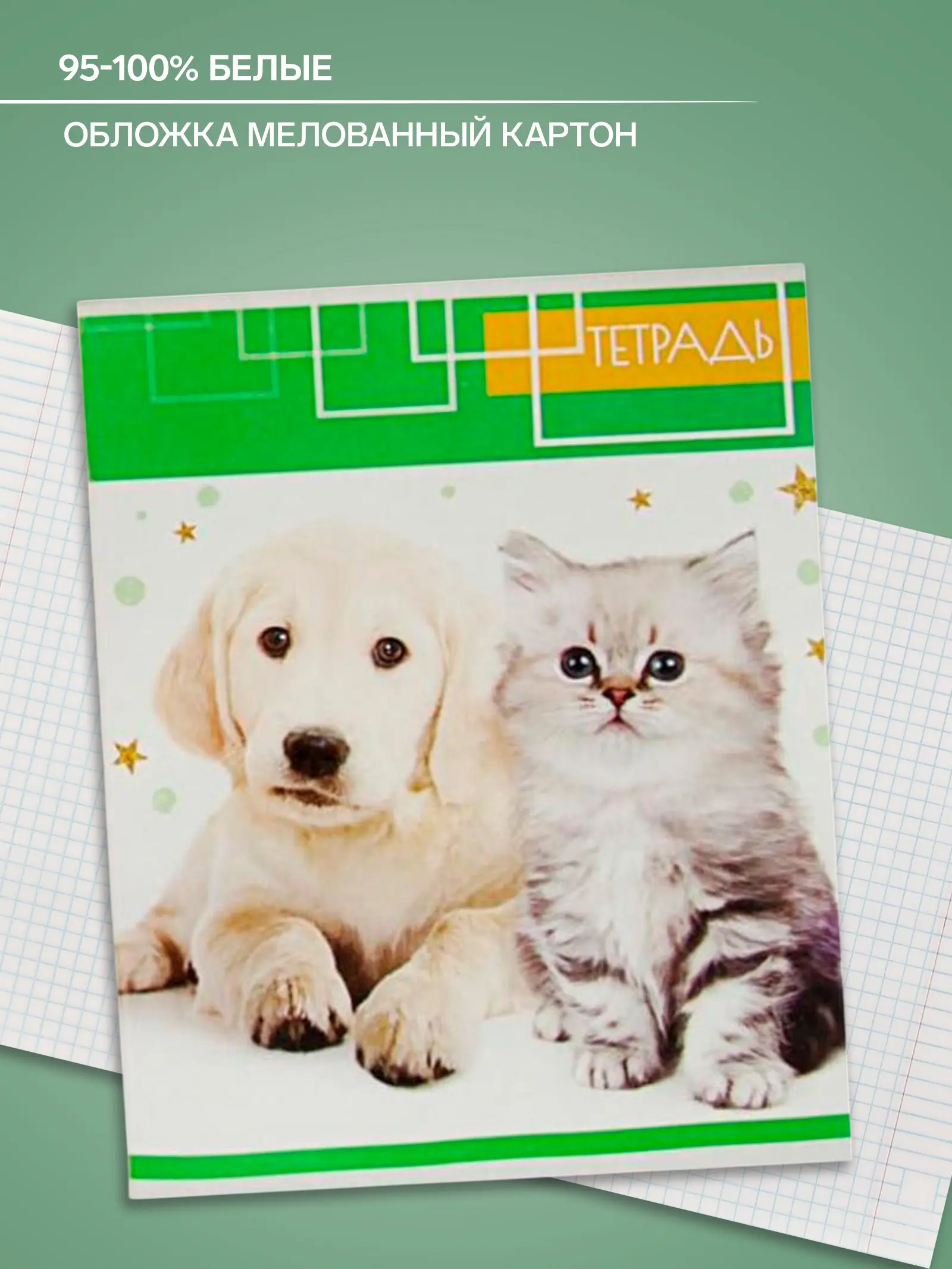 Тетрадь 48 листов, клетка, обложка мелованный картон, блок офсет, белизна 95-100%. Котята