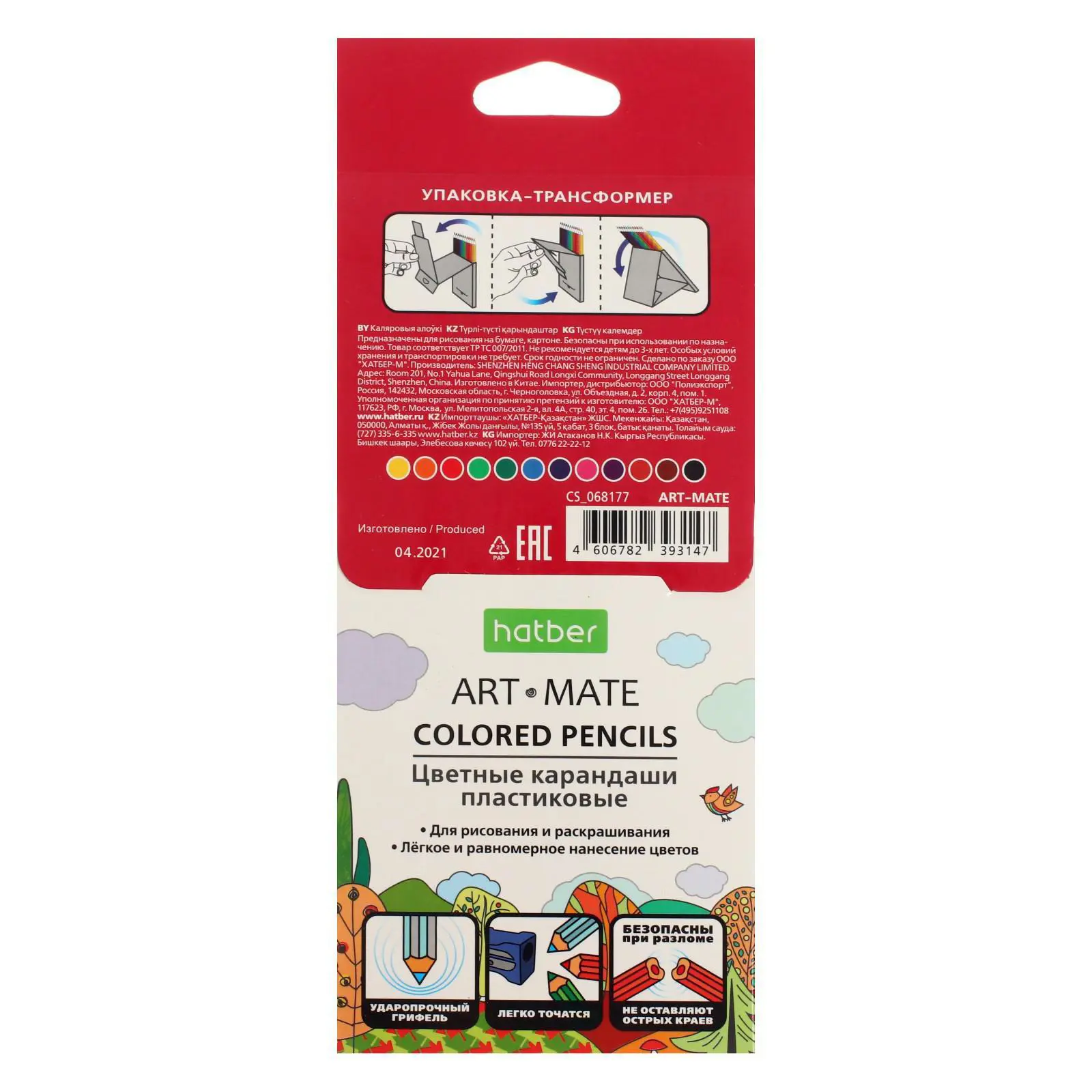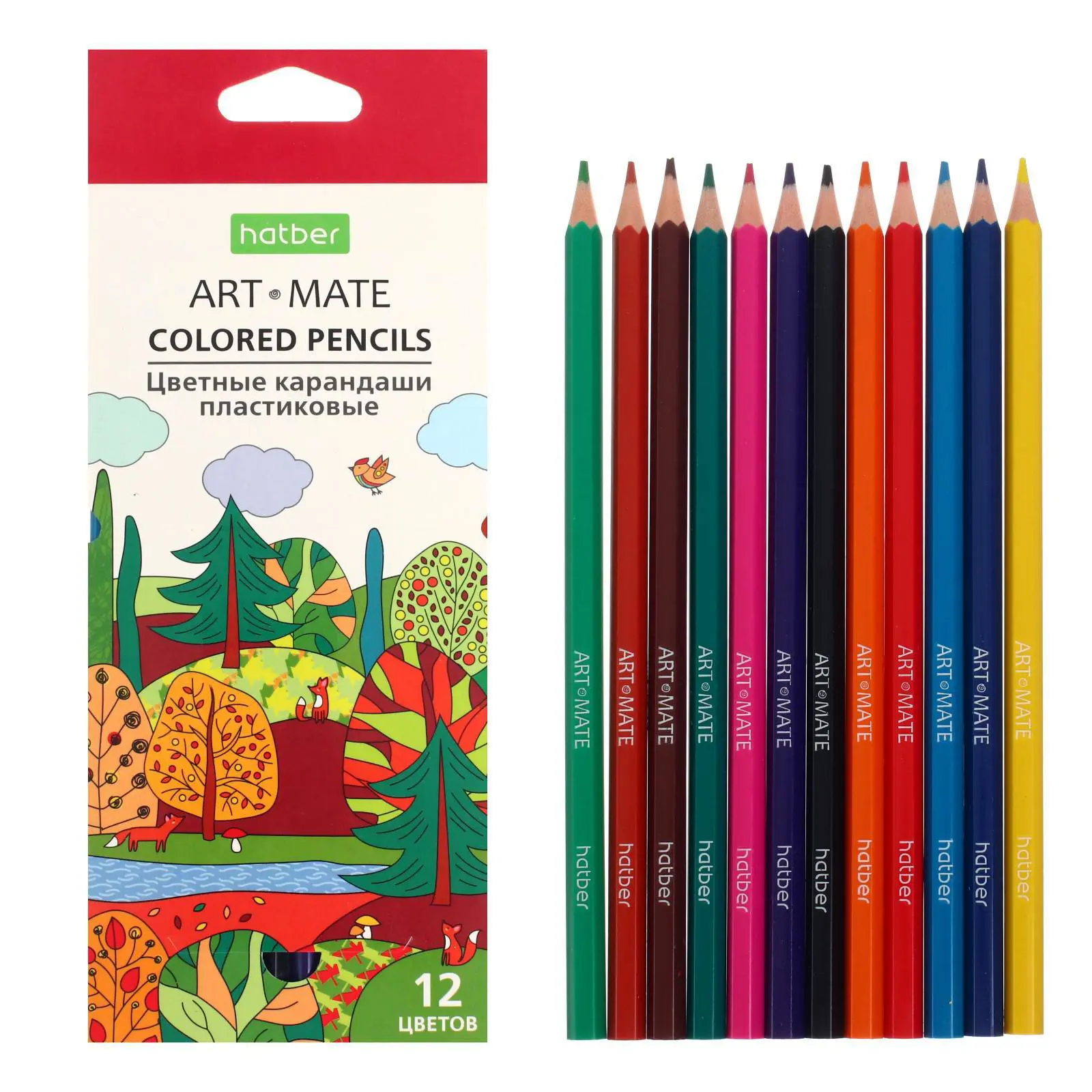 Карандаши цветные. 12 цветов, пластиковые, с европодвесом. Hatber "Mate"