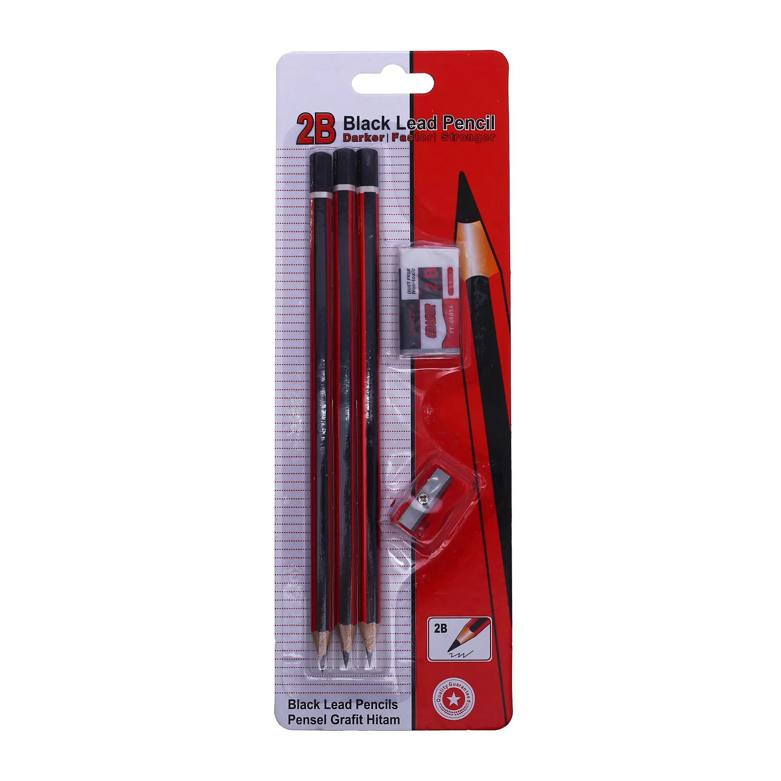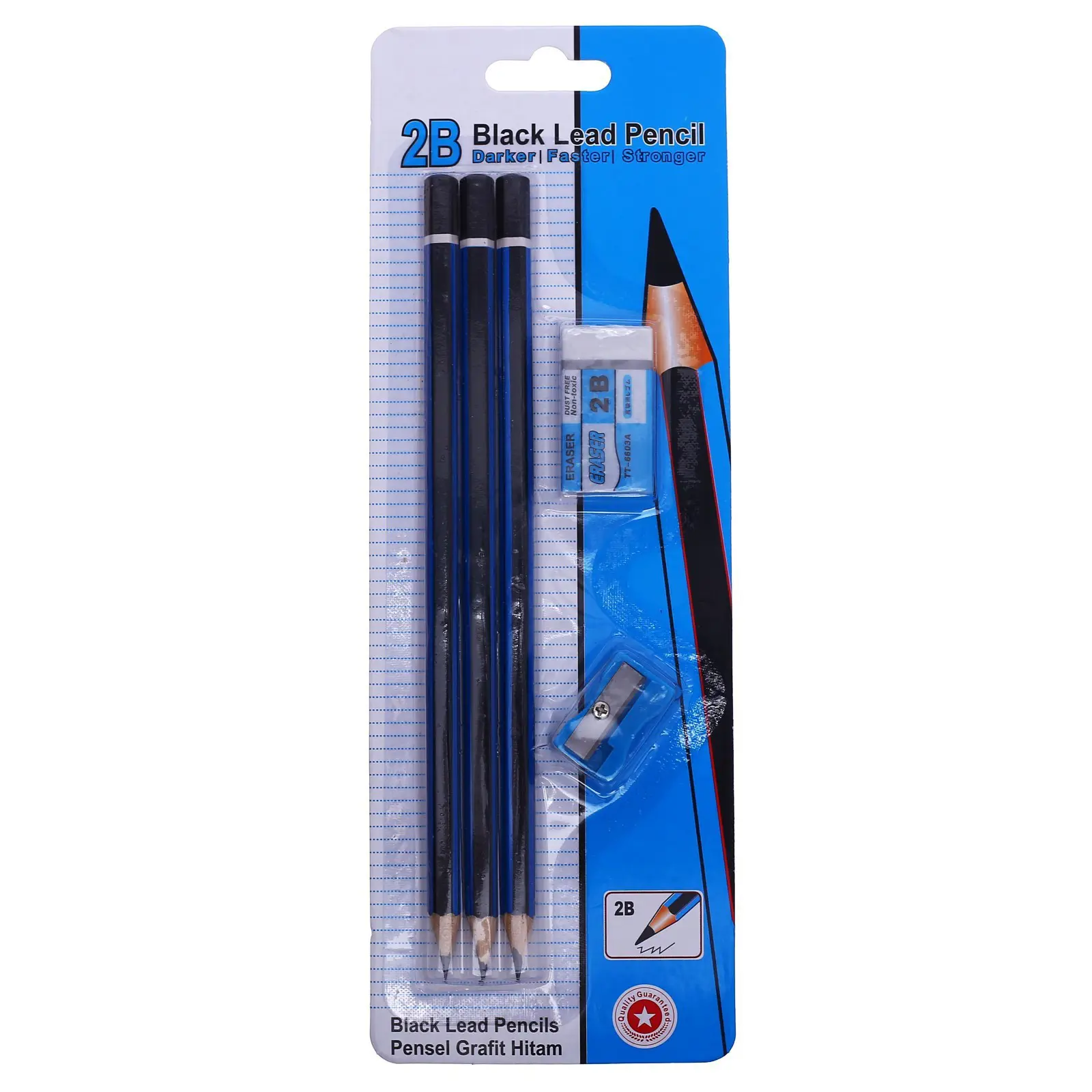 Набор чернографитных карандашей В2, 3 штуки, точилка, ластик. Calligrata
