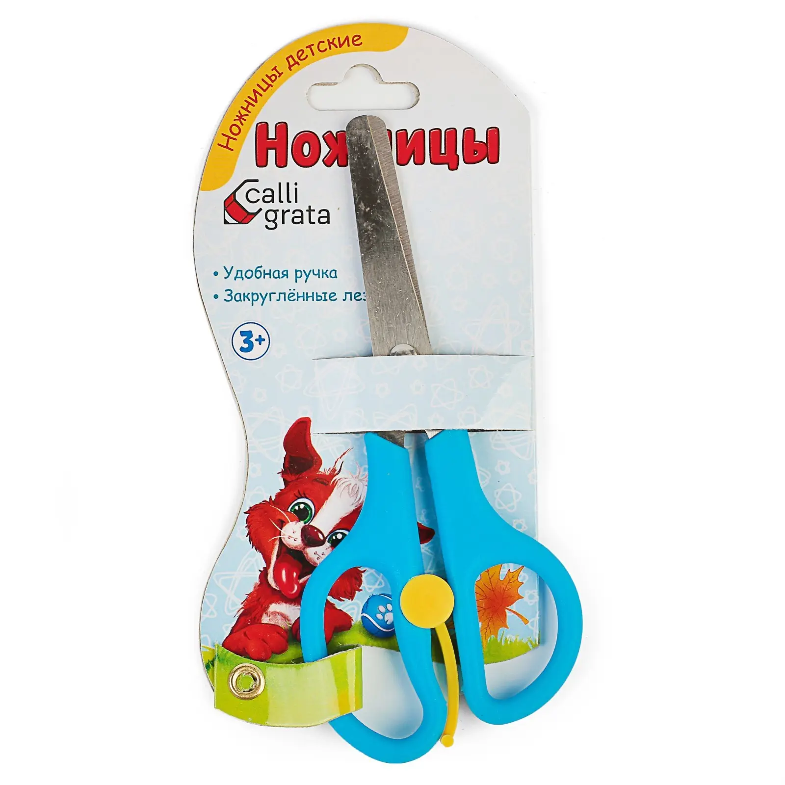 Ножницы детские 13 см, пластиковые ручки, закруглённые концы, фиксатор, блистер. Calligrata