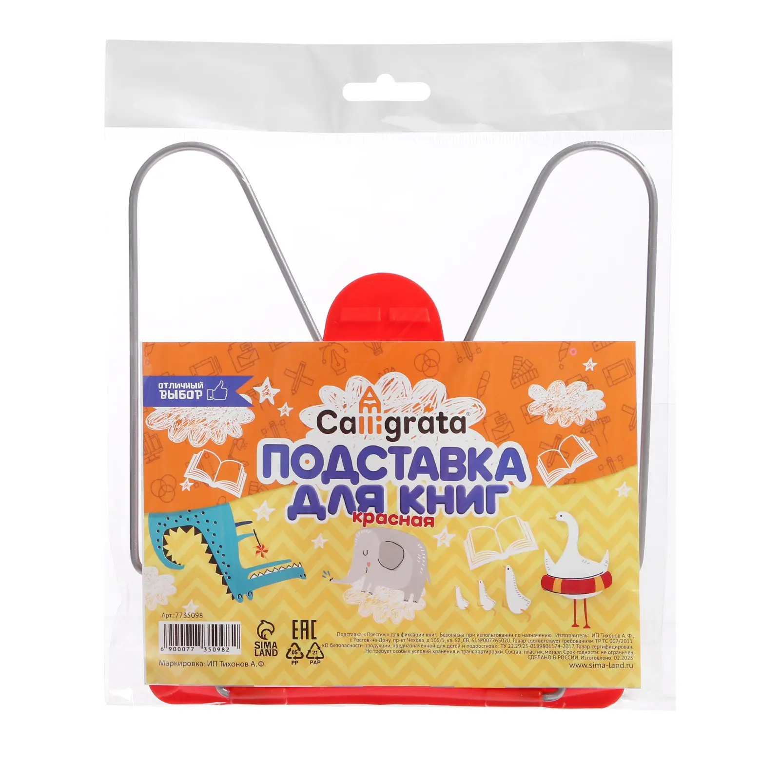 Подставка для книг с пластмассовым упором. Calligrata "ПРЕСТИЖ", красная