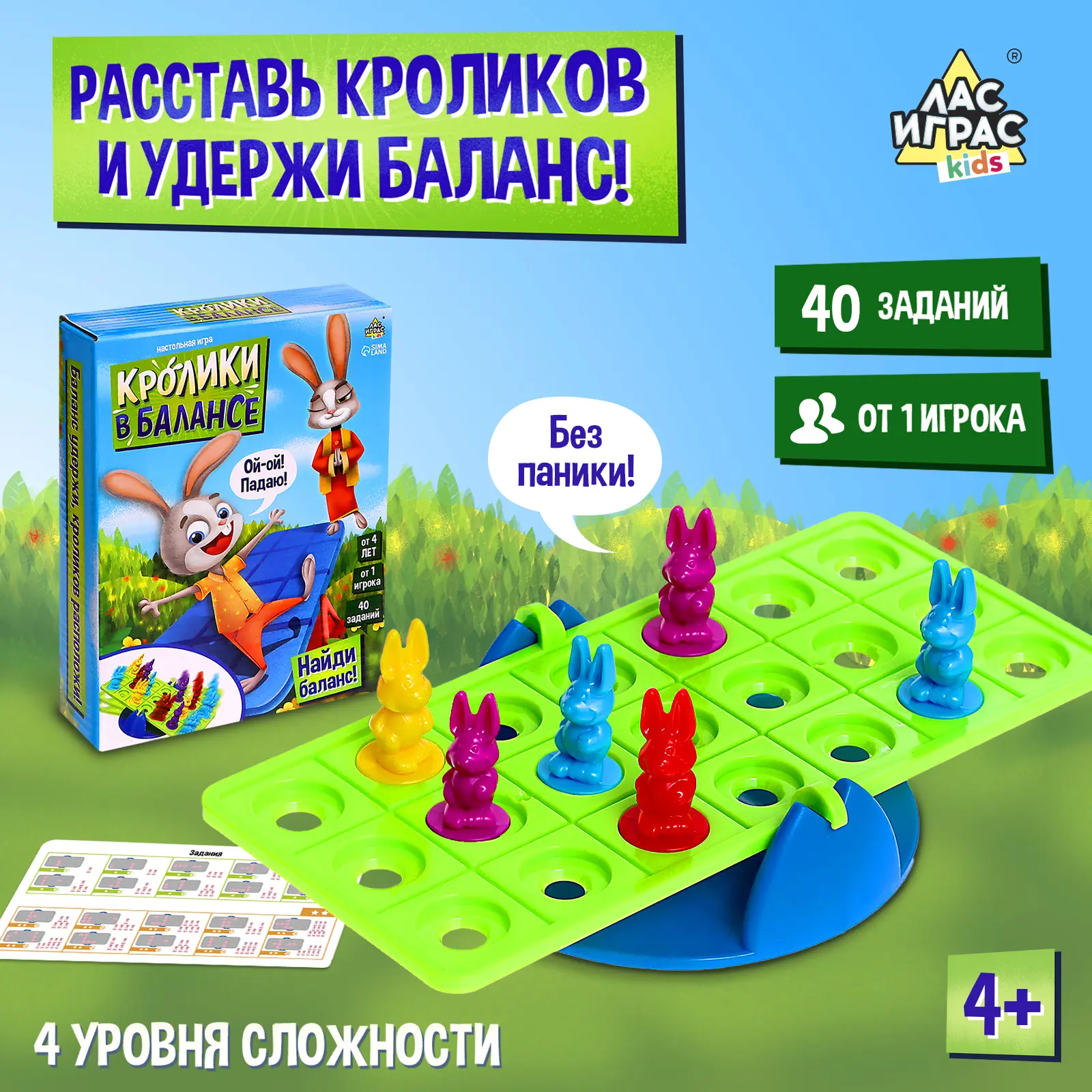 Настольная игра «Кролики в балансе» рекомендована для детей от 4 лет. Рассчитана на 1 игрока.