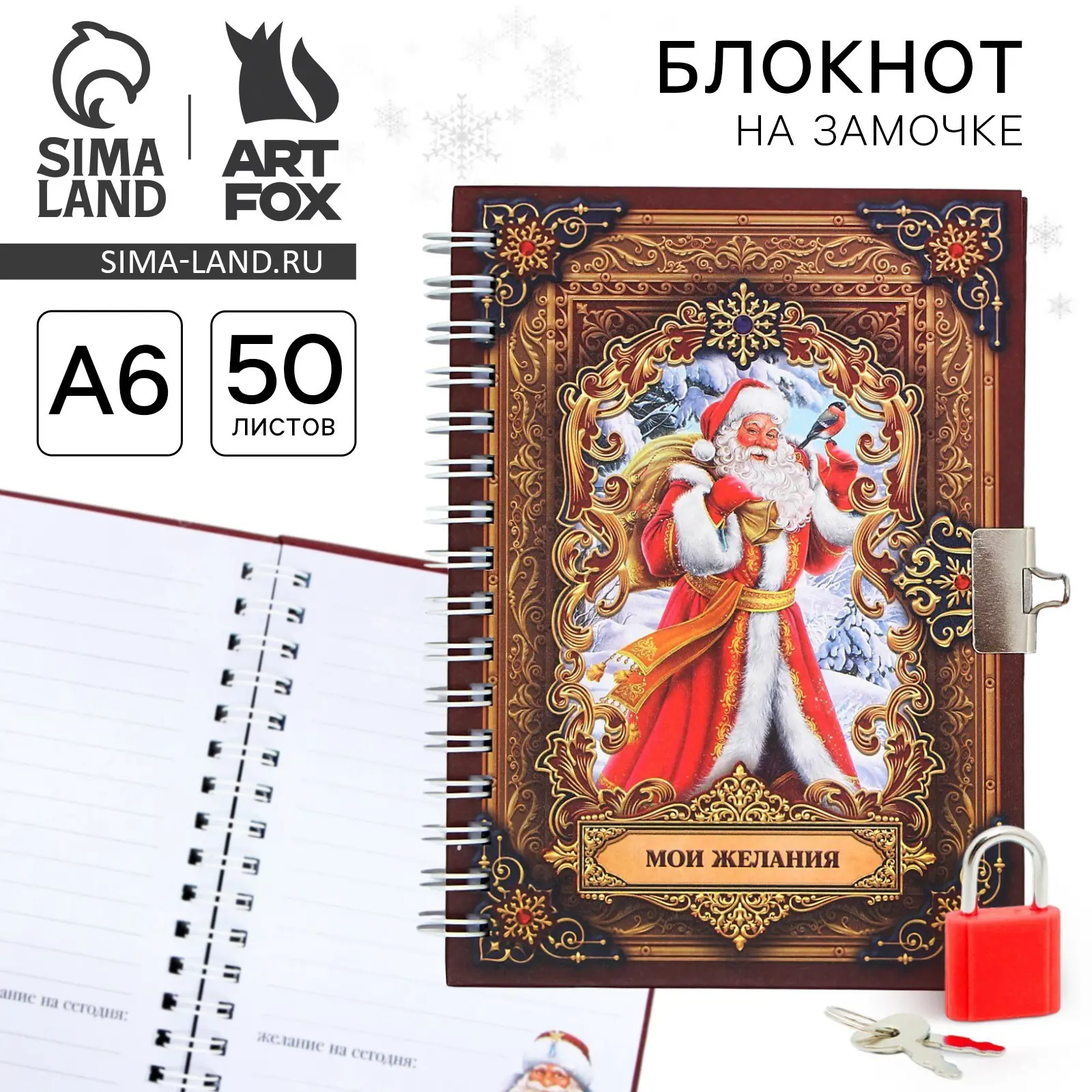 Блокнот новогодний на замочке "Мои желания!", 50л, А6