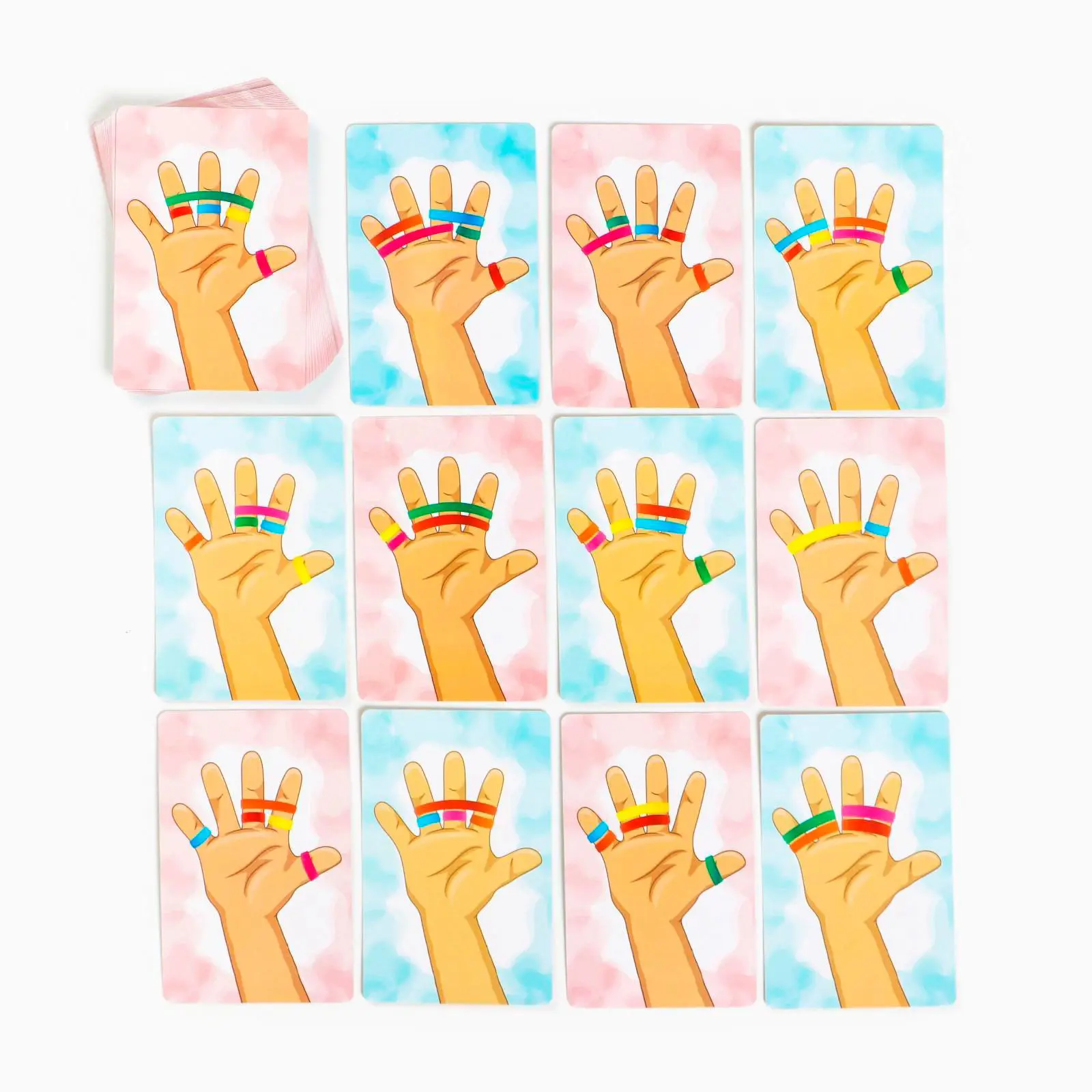 Это весёлая семейная игра для самых быстрых и внимательных! На каждой карточке вы найдёте забавные комбинации из резинок, которые нужно составлять на пальцах руки. Собирайтесь всей семьёй или компанией друзей и устраивайте соревнования на скорость!