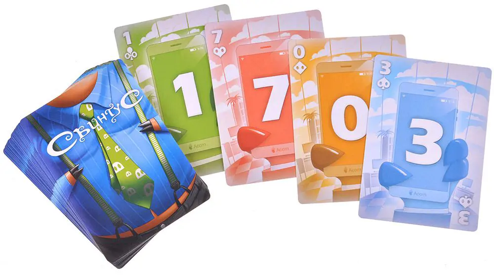 Комплектация: 64 карты с цифрами; 48 специальных карт; правила игры.