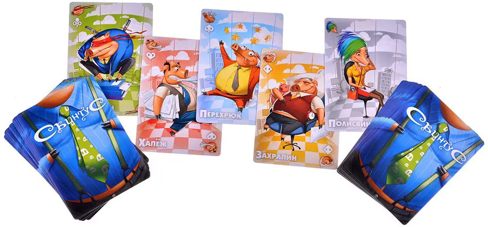 Настольная игра "Свинтус" – это весёлая и быстрая карточная игра для любой компании от 2 до 10 человек. Игра подойдёт детям, но в неё интересно играть и взрослым. В неё можно играть дома, в кафе или в дороге – "Свинтус" прекрасно скрасит ваш досуг. Простые правила, яркий и милый дизайн, динамичный игровой процесс – эти особенности превратили "Свинтуса" в настоящий хит! Хотя сама игра и полностью карточная, тем не менее в ней вам пригодятся даже такие навыки, как хорошая реакция, рефлексы, внимательность и память. Ну и, конечно, компания товарищей, готовых как следует поразвлечься!