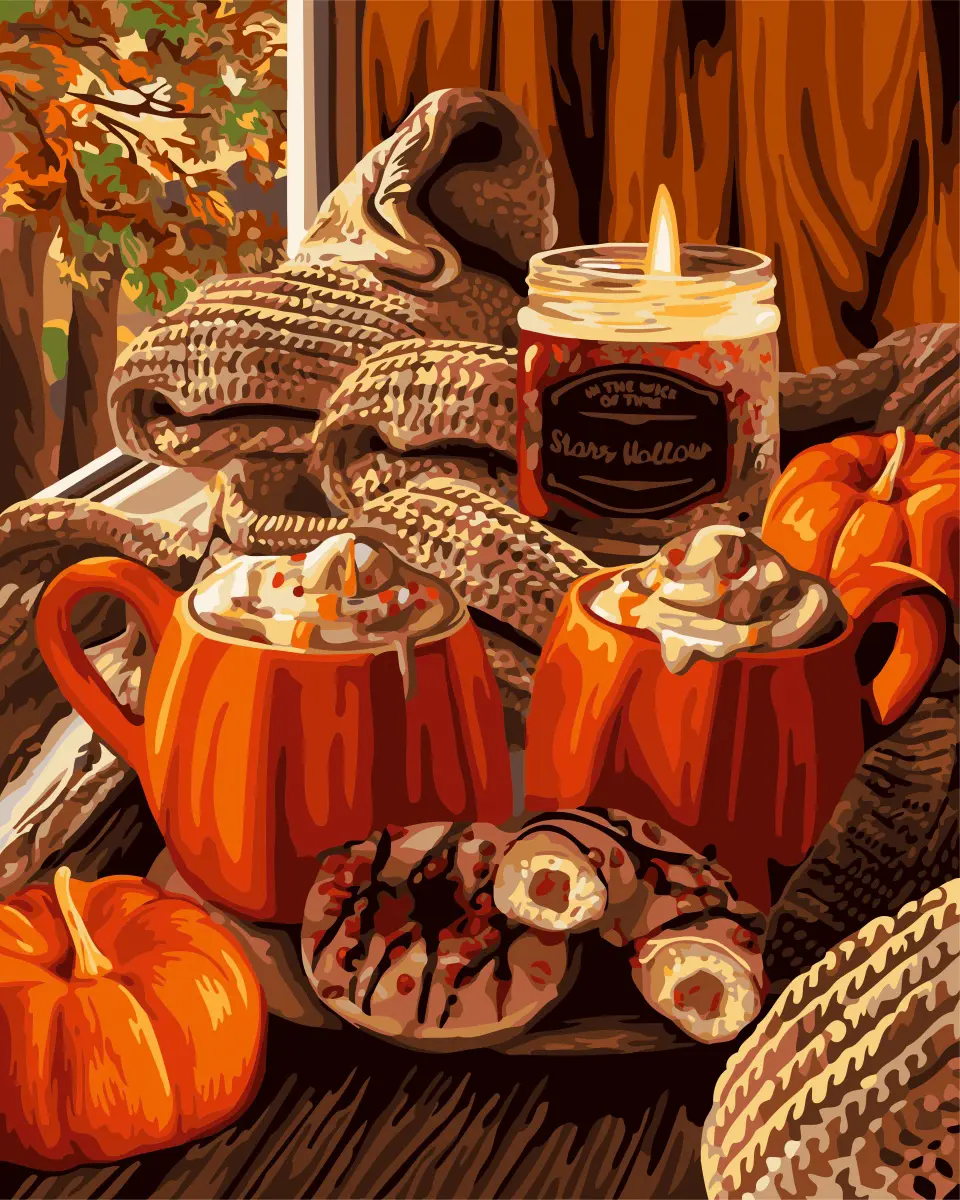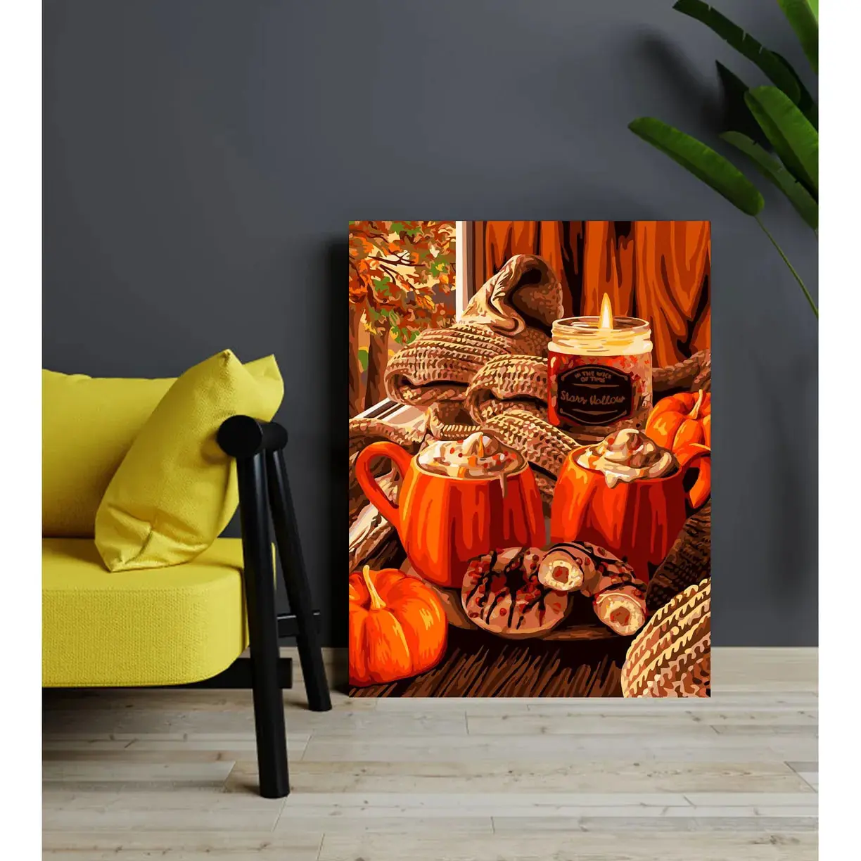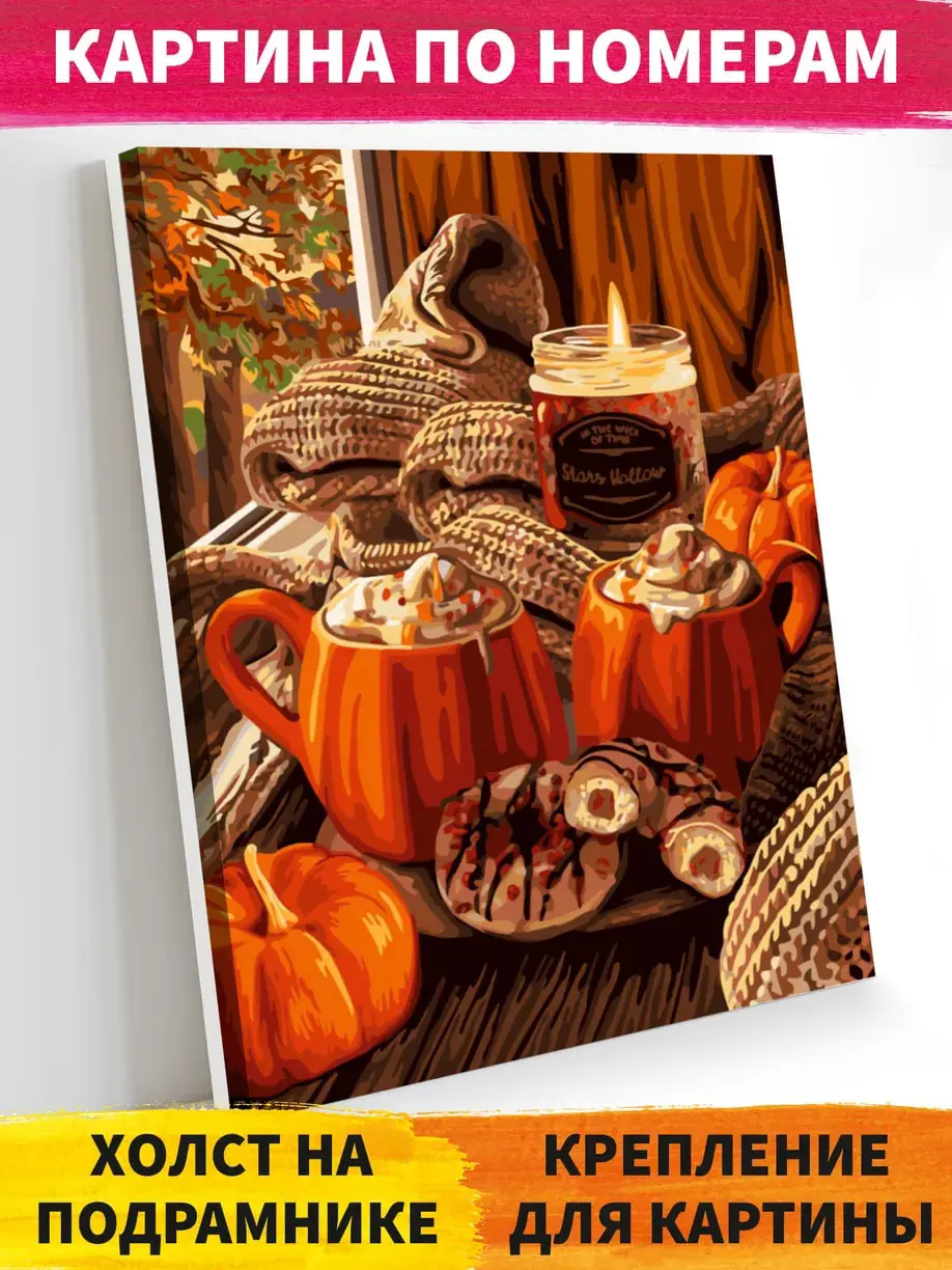 Картина по номерам на холсте 40х50 на подрамнике. "Тыквенный латте"