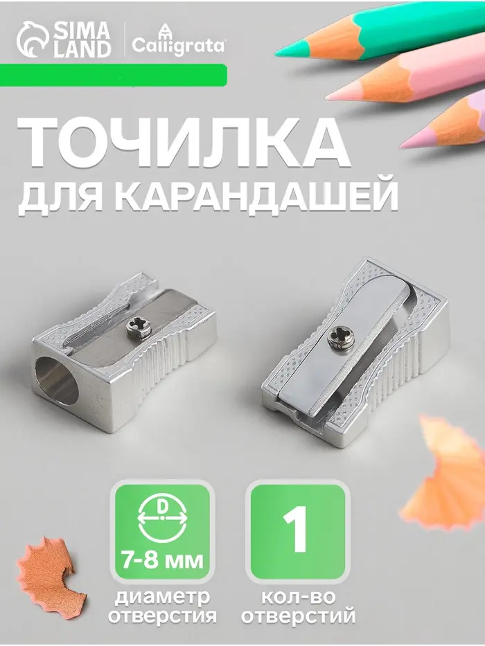 Точилка для карандашей одинарная. "Calligrata". Металлицеский корпус. Серебристая
